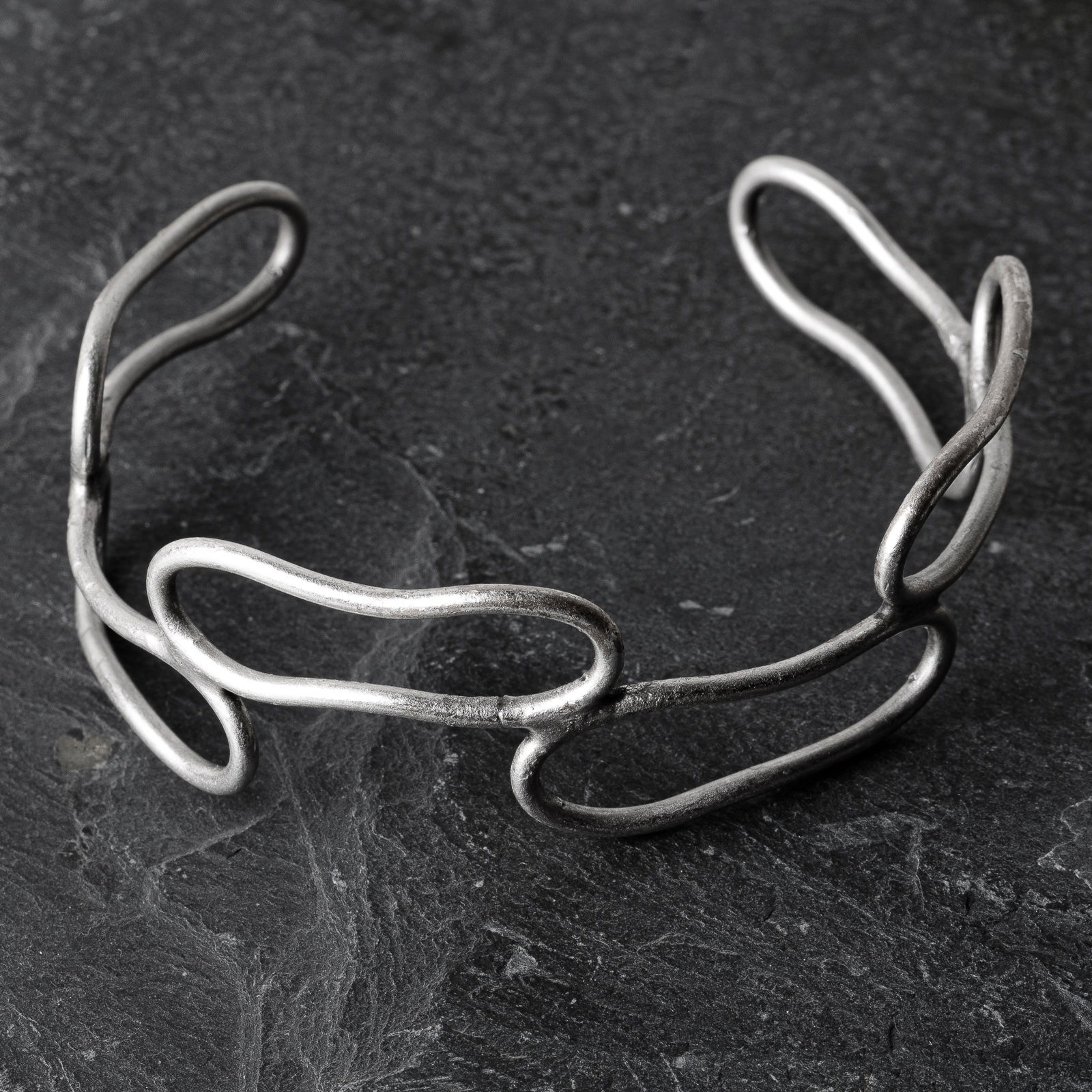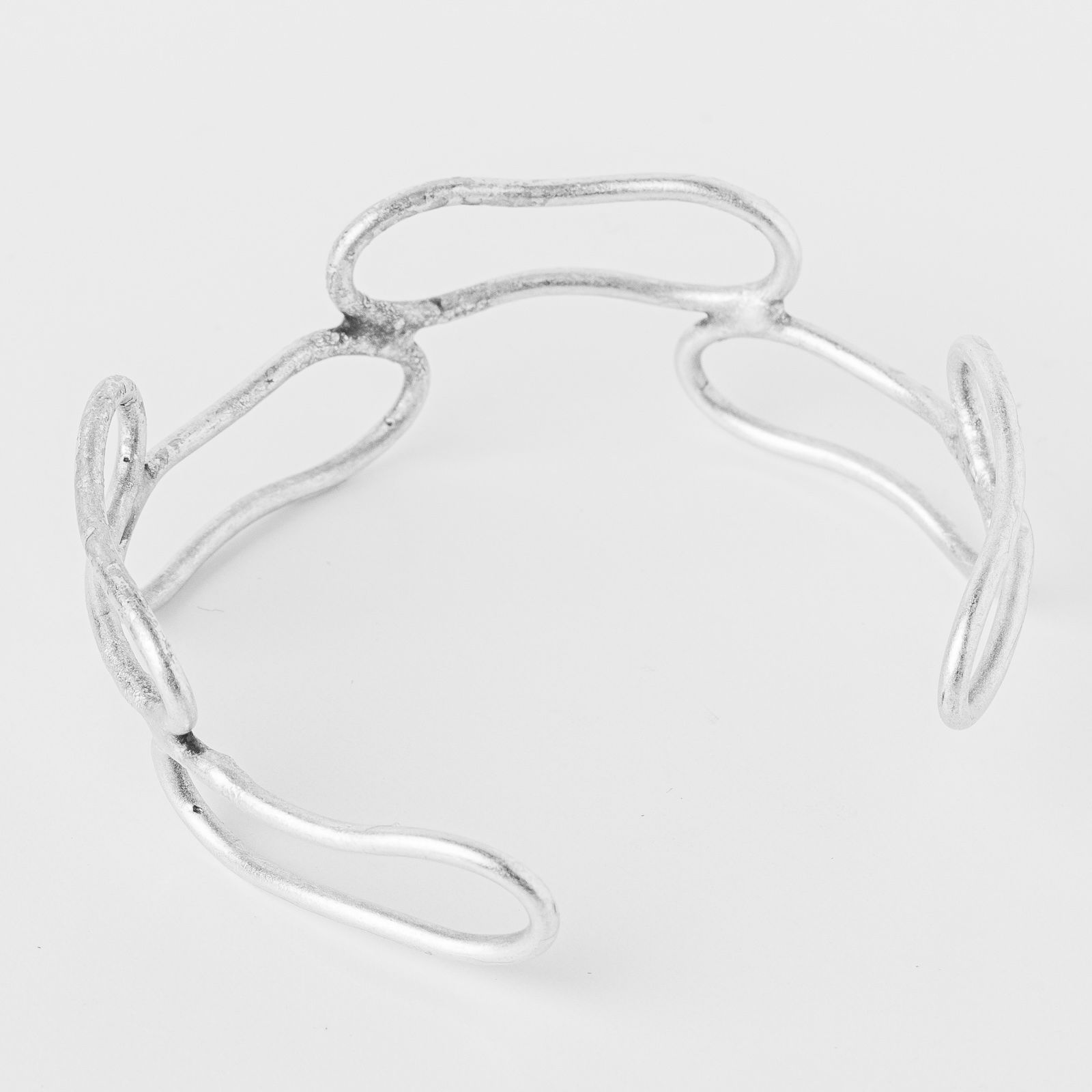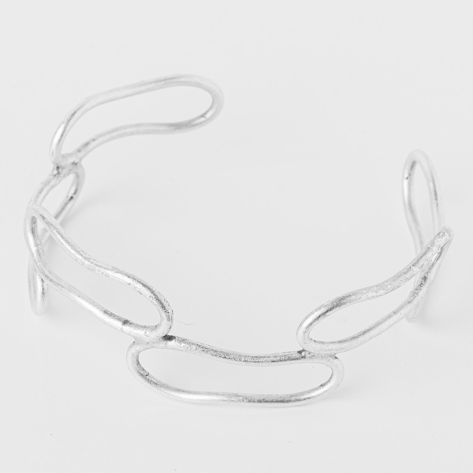 Bratara rigida din cupru argintat cu forme circulare alungite