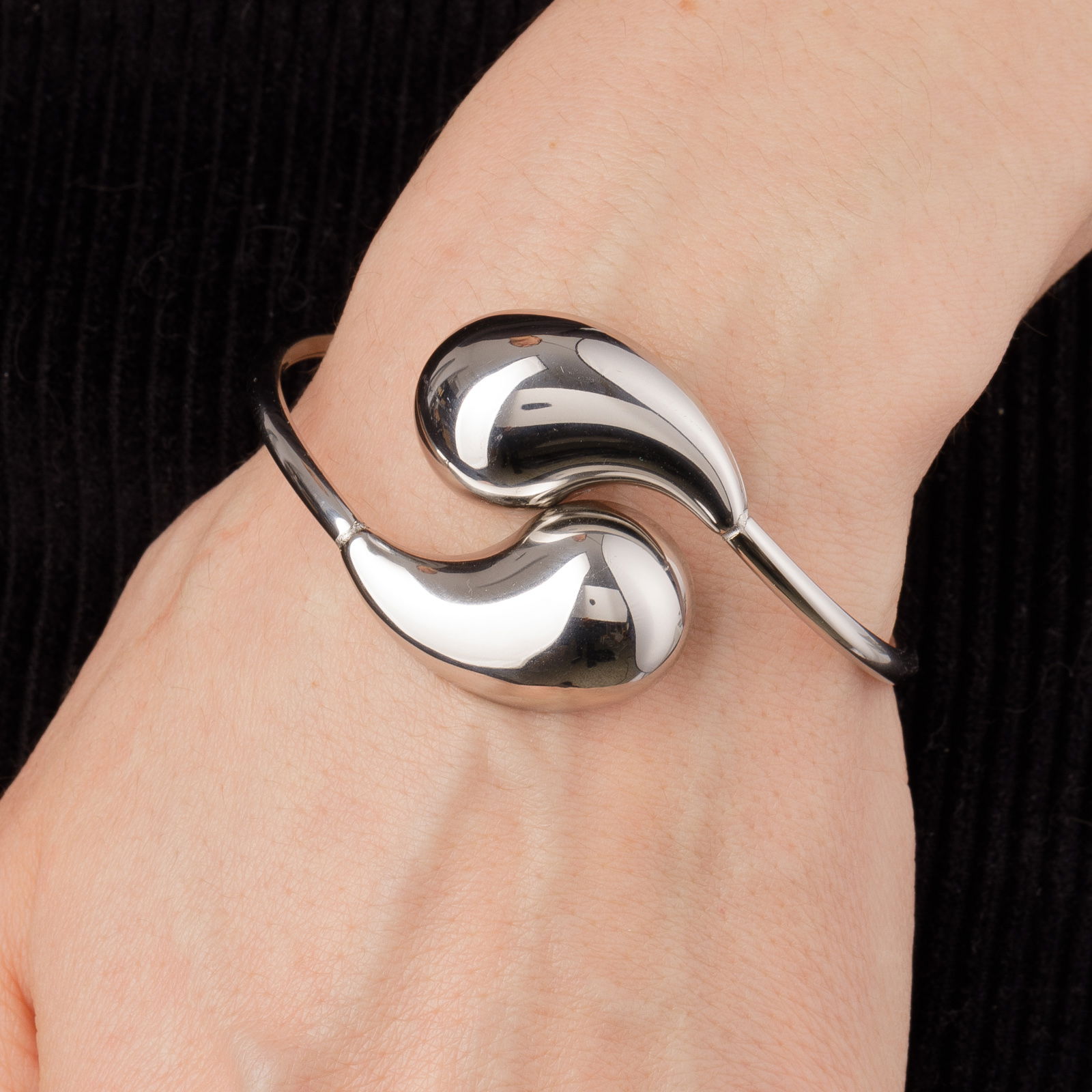 Bratara semirigida elastica cu doua picaturi din otel inoxidabil argintiu