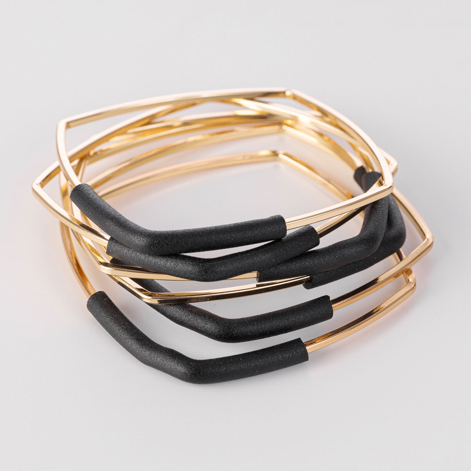 Bratara are 2 elemente mari de 7 x7 cm, independente astfel ca poate fi purtata si una, si mai multe