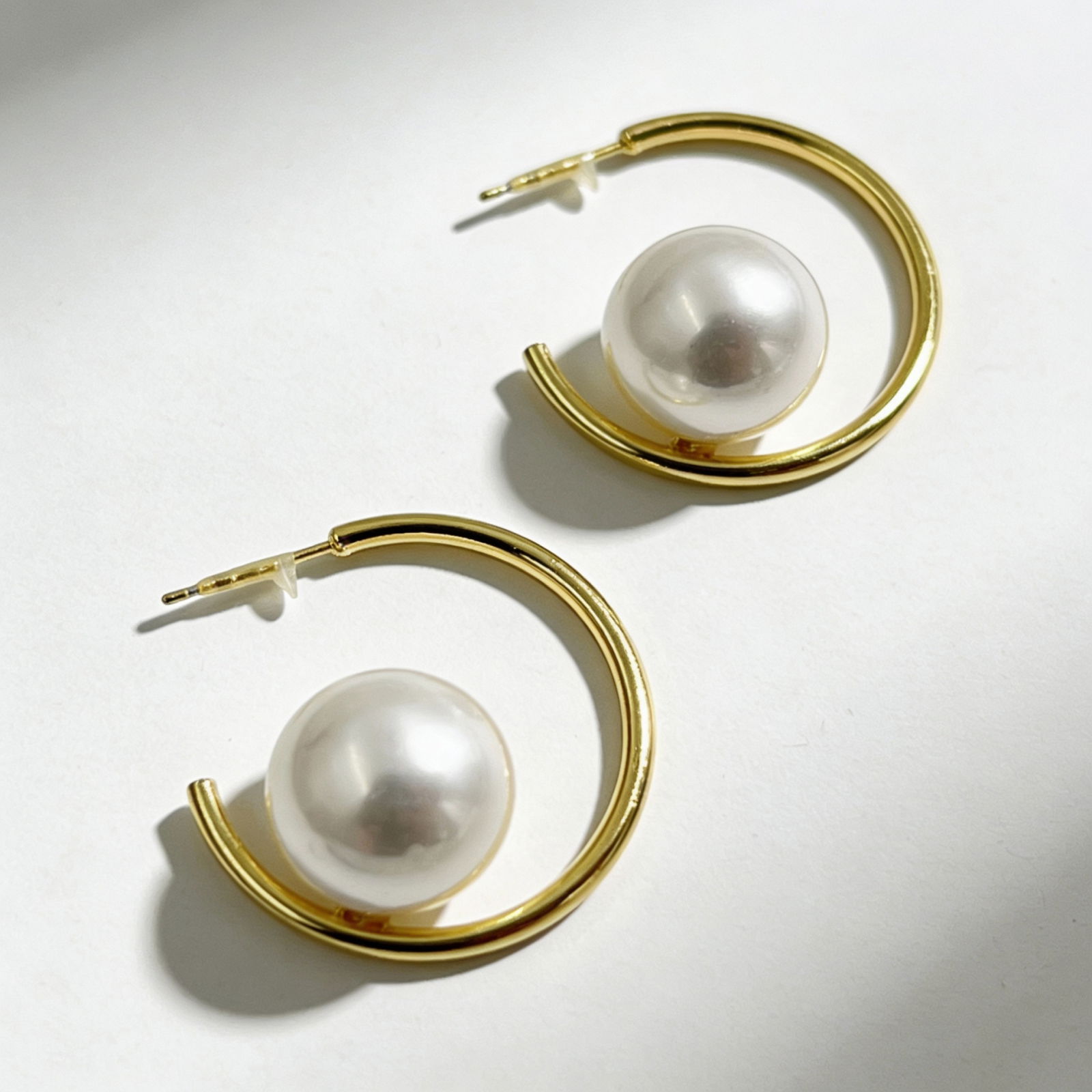 Cercei tip cerc, cu design modern și perlă decorativă, realizați din metal cu finisaj lucios. Sistem de prindere sigur, confortabili și ușori, potriviți pentru purtare zilnică sau ocazii speciale.