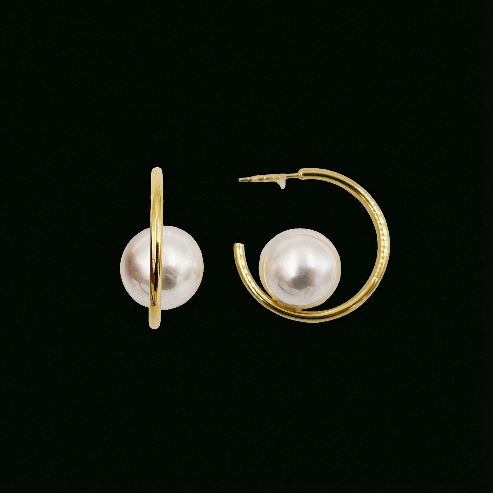 Un joc subtil între linii moderne și eleganță clasică. Acești cercei tip cerc sunt definiți de forma lor curată și de perla delicată, integrată armonios în design. Contrastul dintre metalul lucios și suprafața fină a perlei creează un efect sofisticat, dar ușor de purtat.