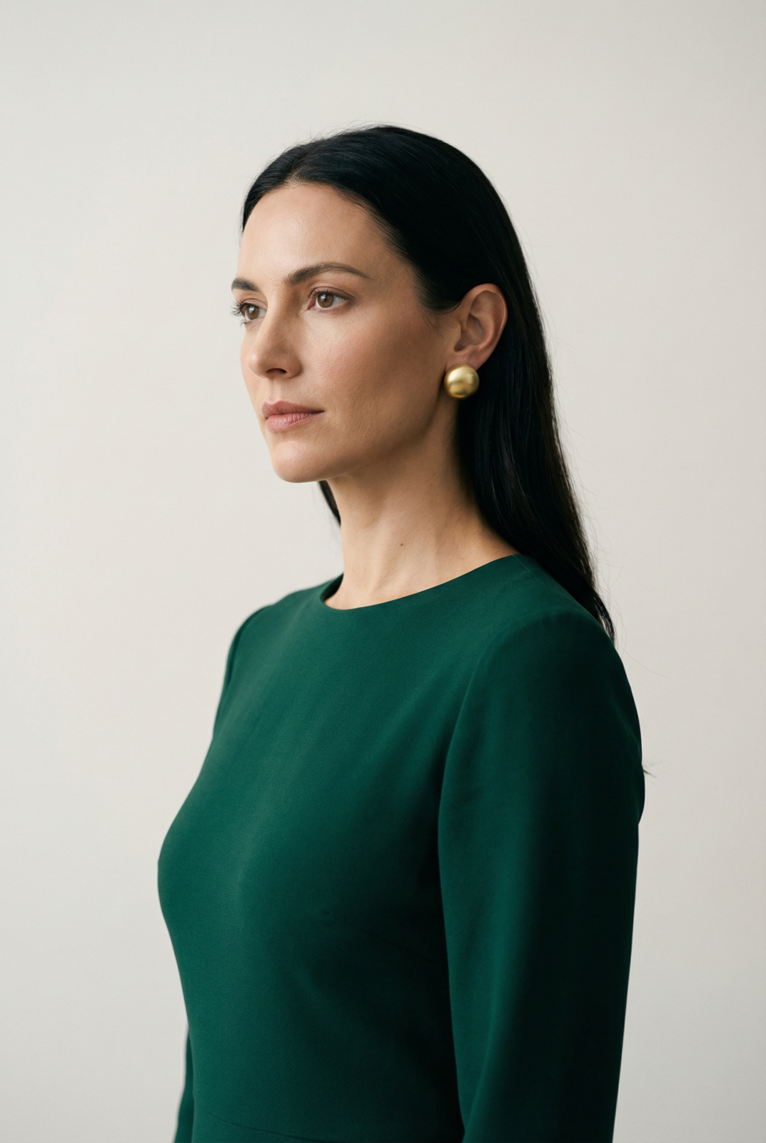 Cercei aurii cu volum sculptural, creați pentru femeile care apreciază simplitatea rafinată. Forma lor rotunjită, ușor bombată, captează lumina într-un mod subtil, oferind un luciu satinat elegant, niciodată ostentativ.