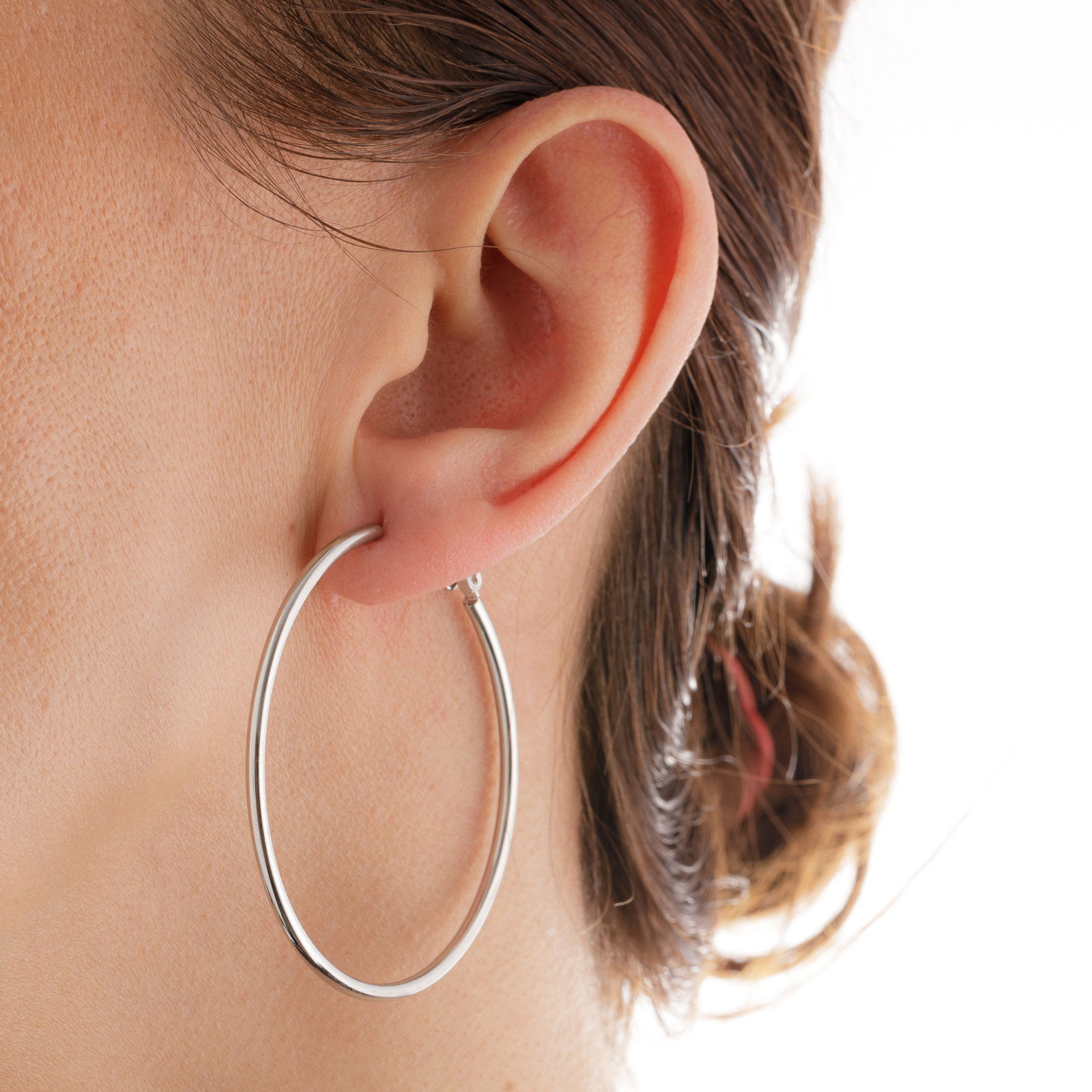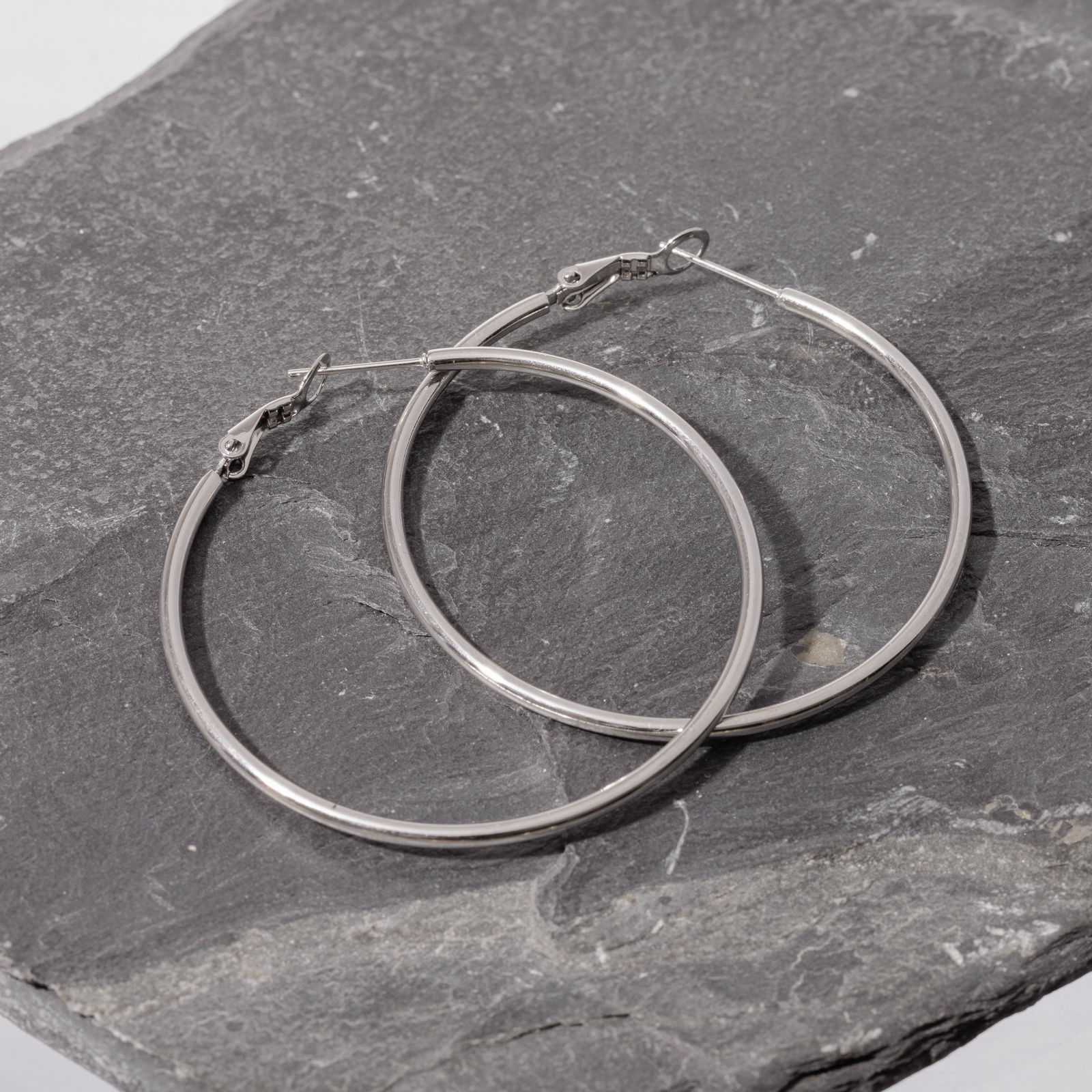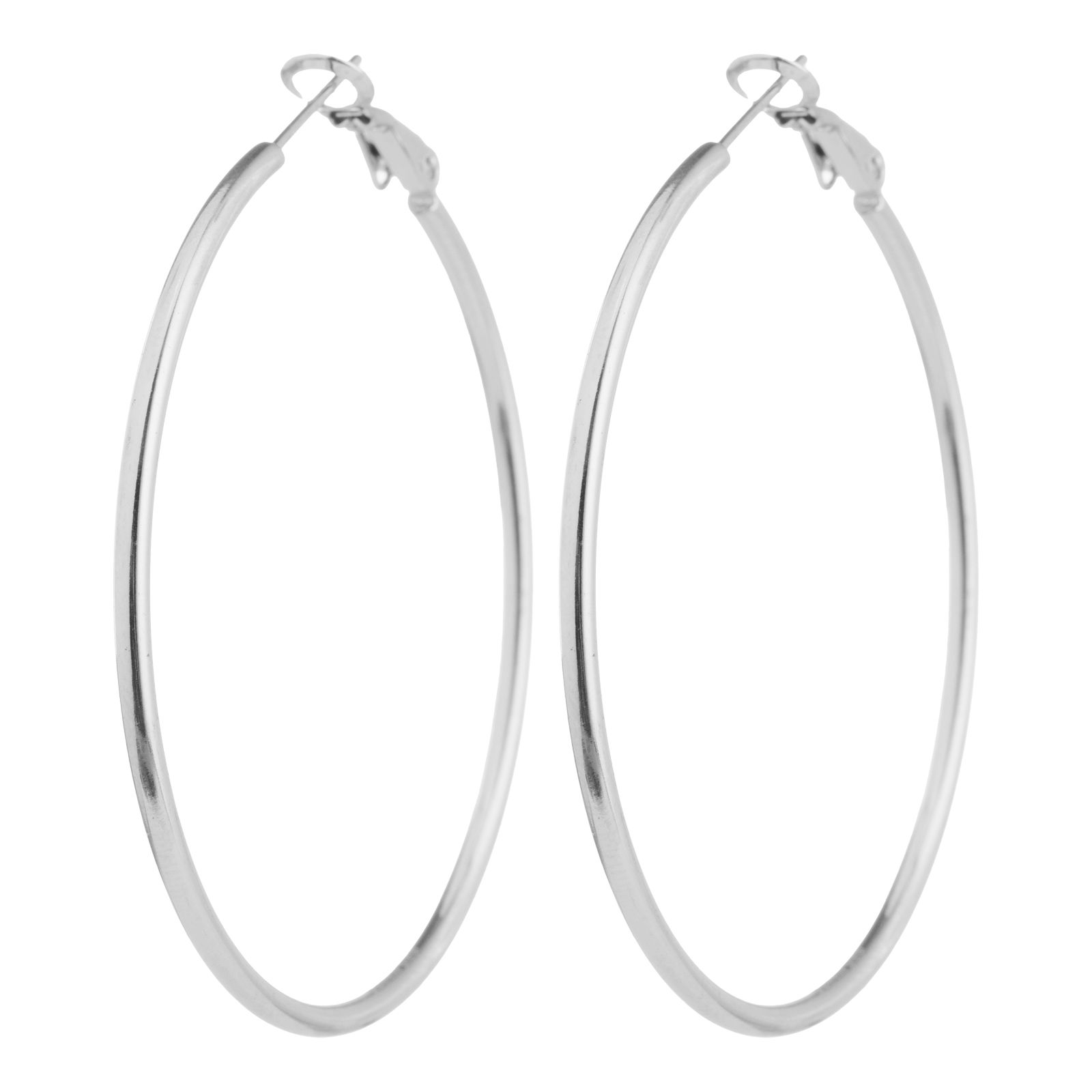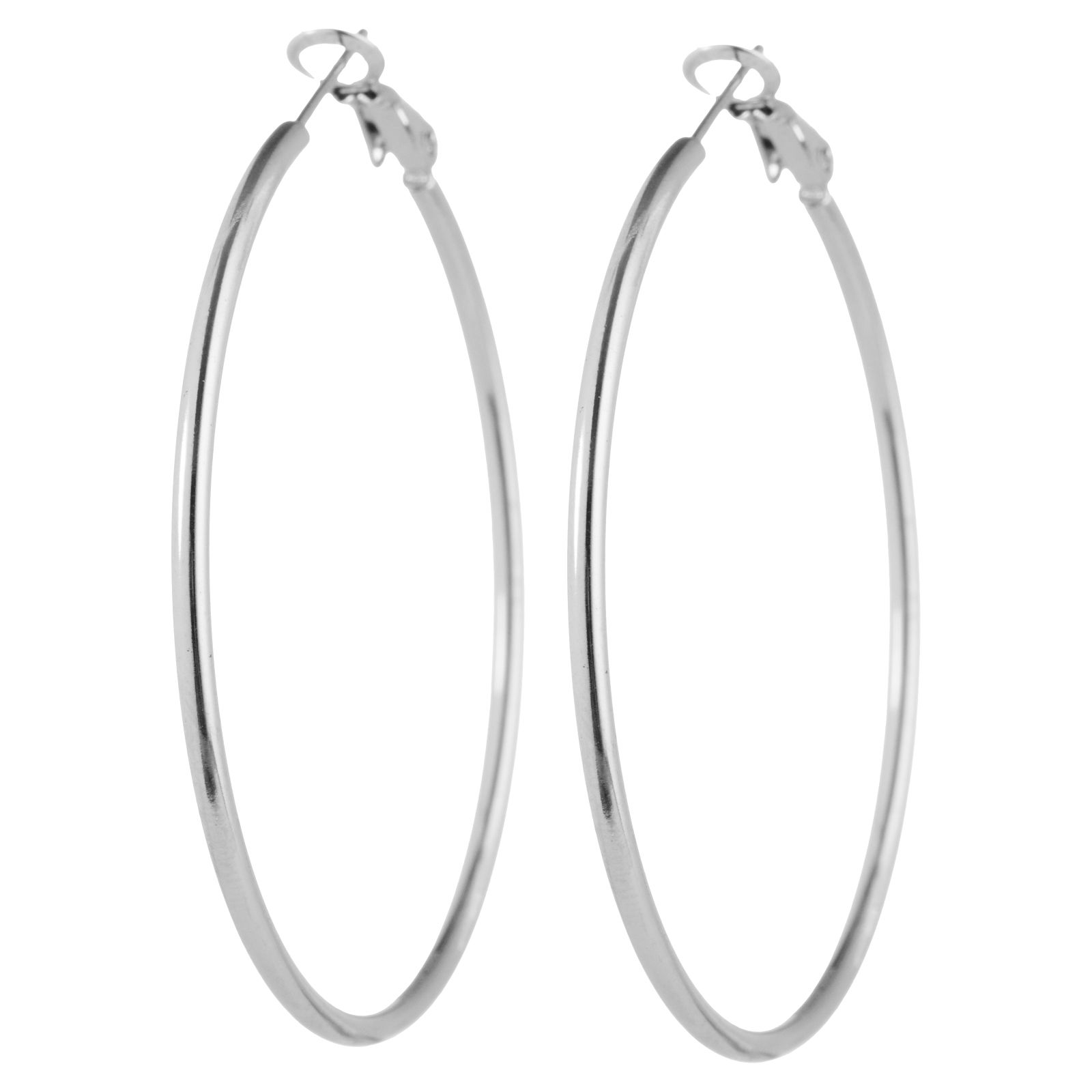 Shopika Cercei creole 6 cm cu sectiune subtire rotunda din otel inoxidabil argintiu