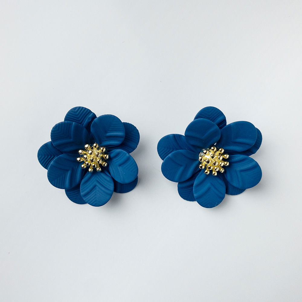 Shopika Cercei in forma de floare cu petale duble si auriu in mijloc, albastru electric