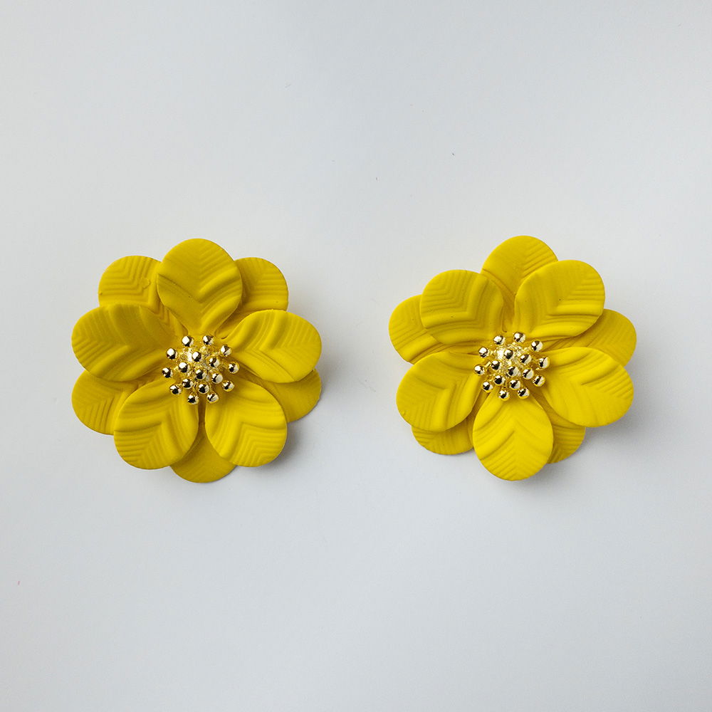 Shopika Cercei in forma de floare cu petale duble si auriu in mijloc, galbeni