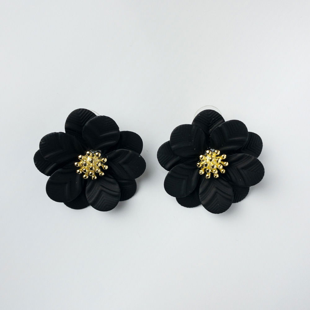 Shopika Cercei in forma de floare cu petale duble si auriu in mijloc, negri