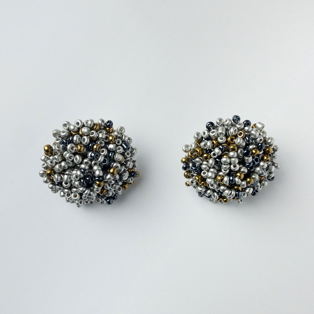 Cercei in forma de papadie cu pietricele mici argintii, aurii si negre