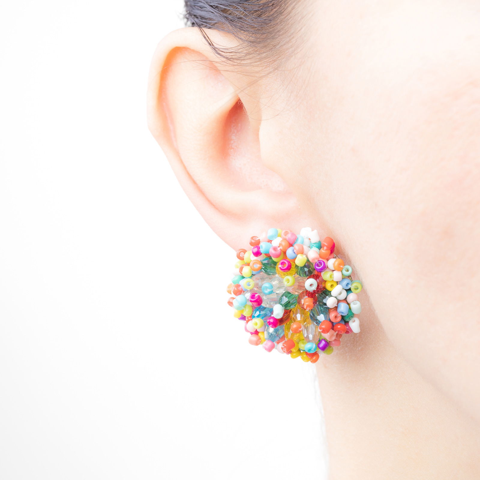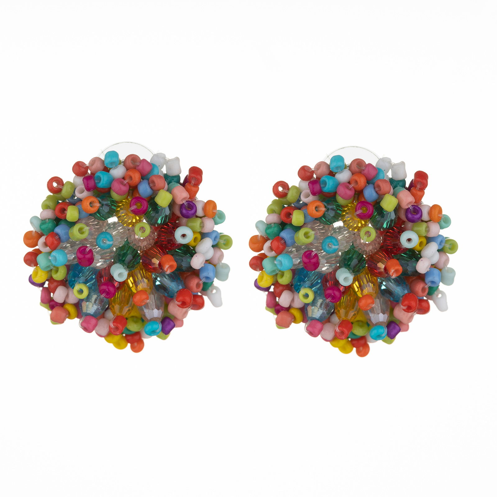 Cercei in forma de papadie cu pietricele mici in culori vibrante