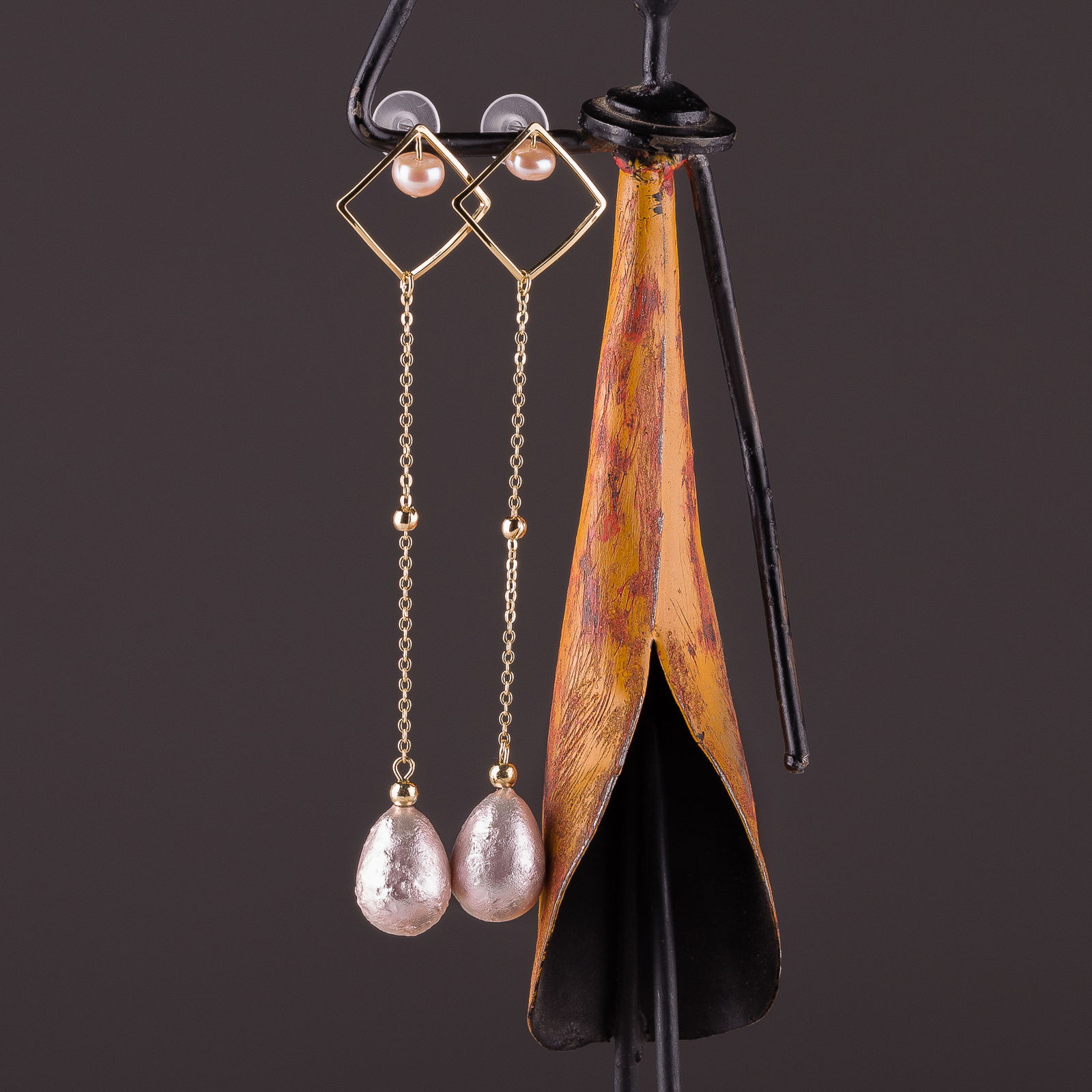 Shopika Cercei aurii lungi cu lant si perla naturala