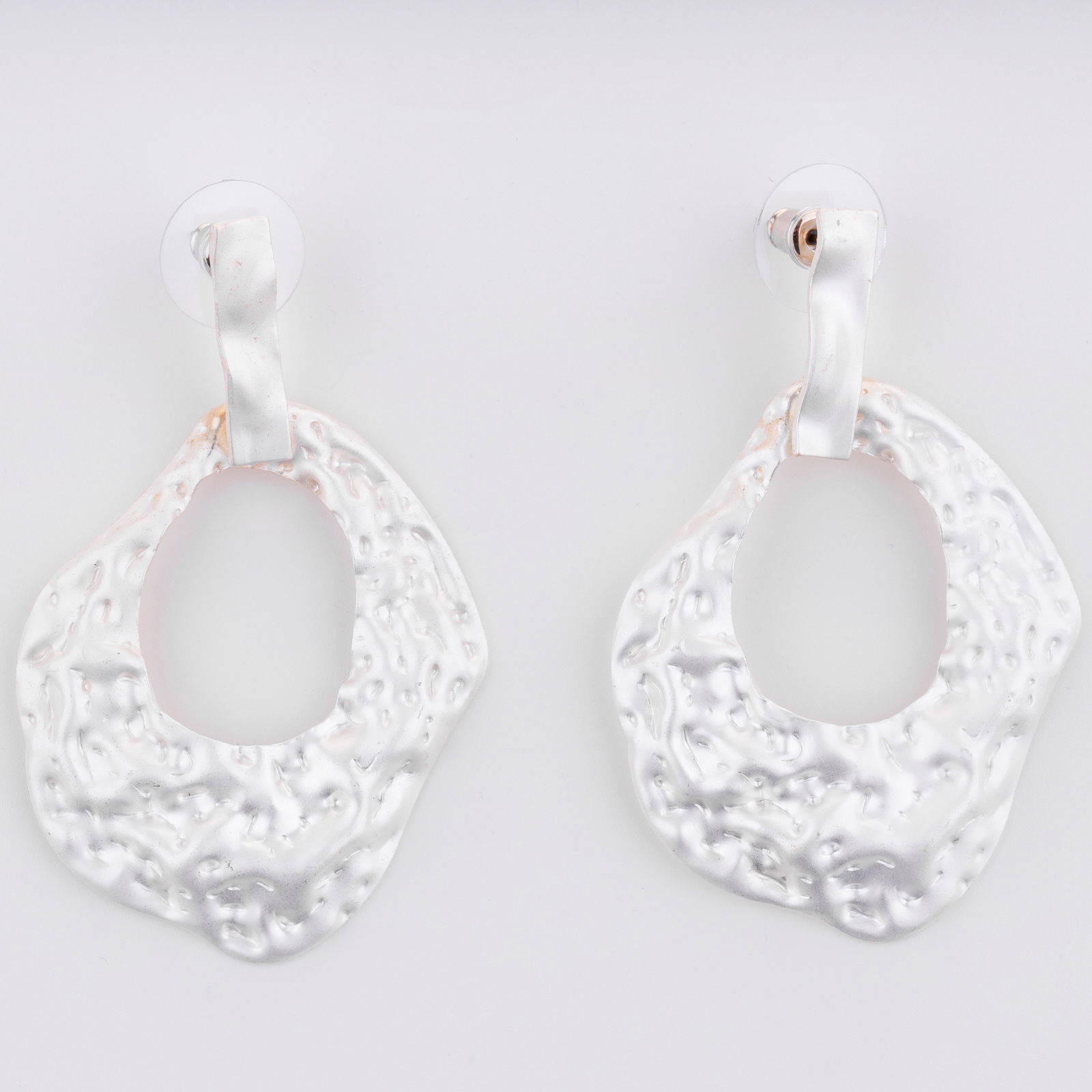 Shopika Cercei lungi metalici argintiu mat cu forma ovala neregulata, cu aspect de metal lovit