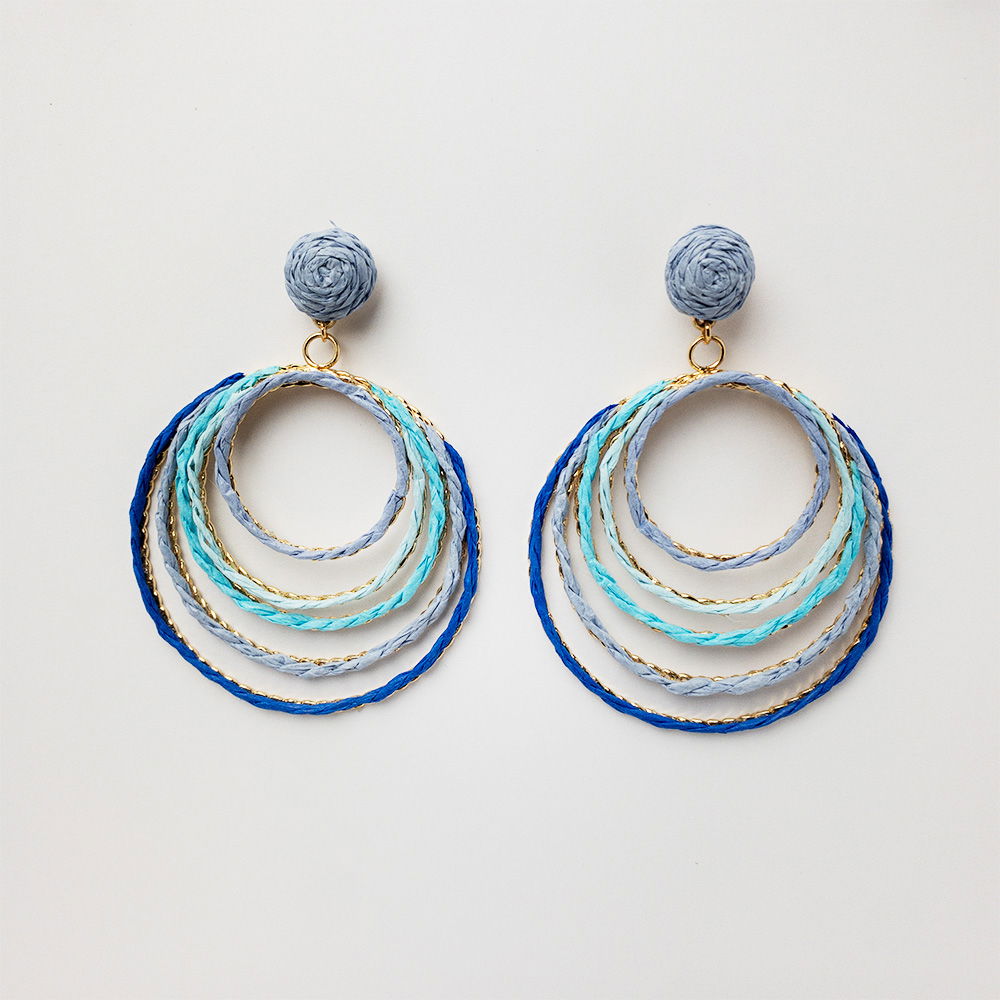 Shopika Cercei metalici aurii cu cinci cercuri, in nuante de albastru