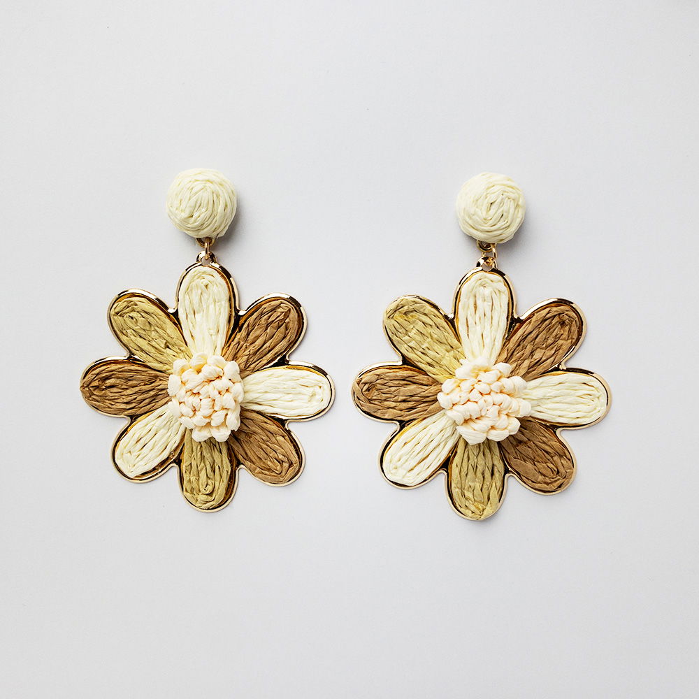 Shopika Cercei metalici aurii floare cu petale in nuante de bej si camel