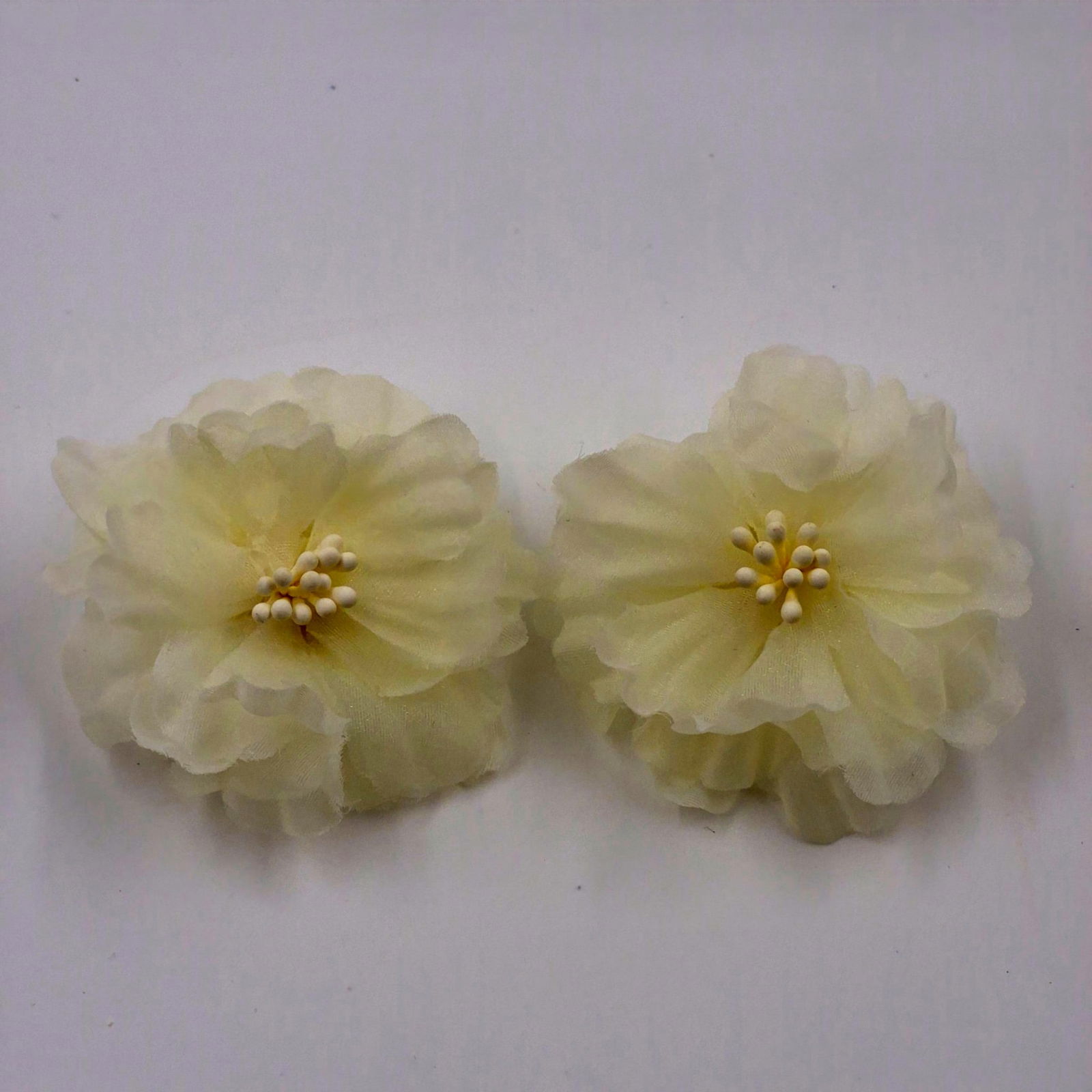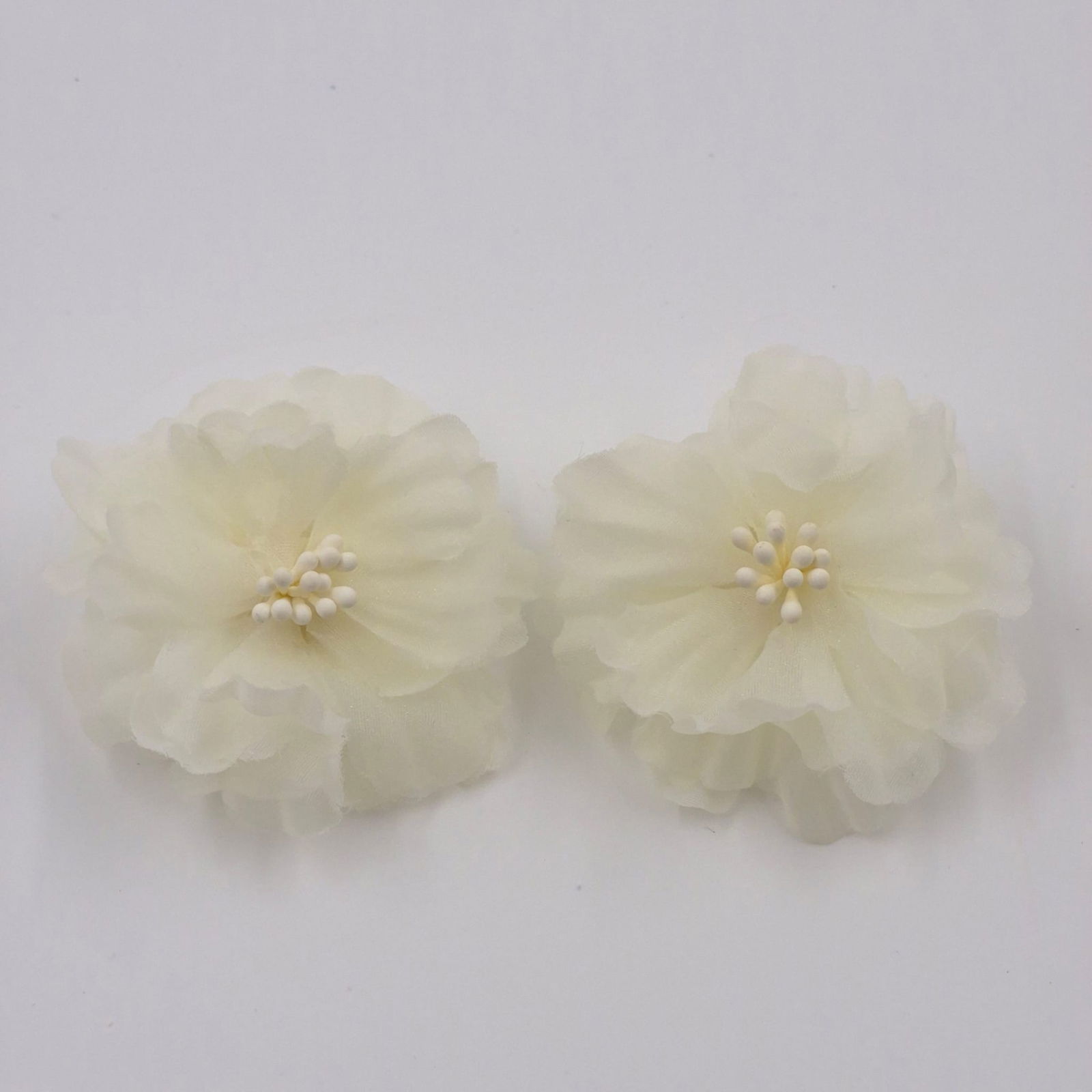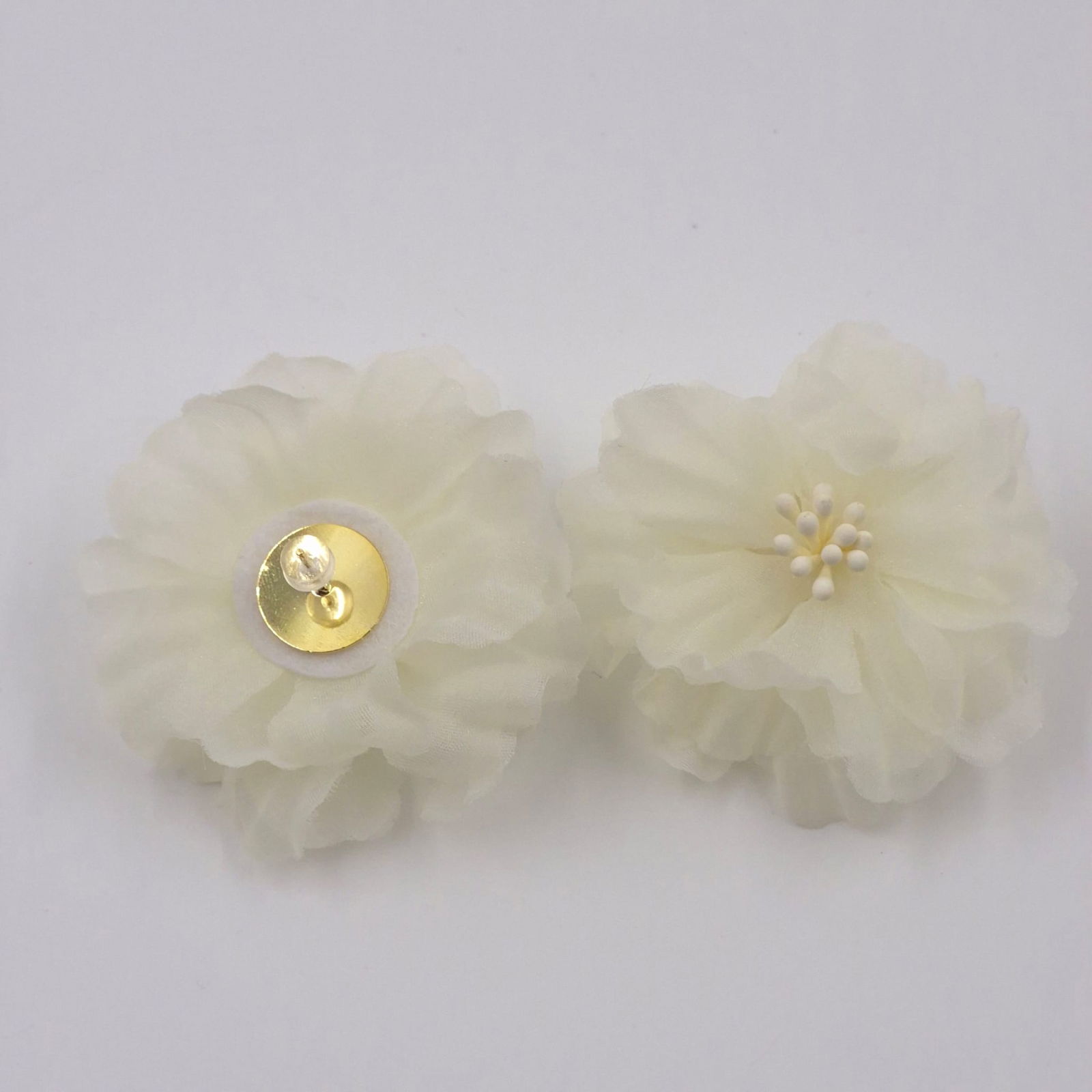 Acesti cercei statement impresioneaza prin designul lor delicat si voluminos, realizat sub forma de floare din material textil fin. Nuanta adauga un aer feminin si romantic, iar textura vaporoasa a petalelor creeaza un efect vizual elegant si usor diafan.