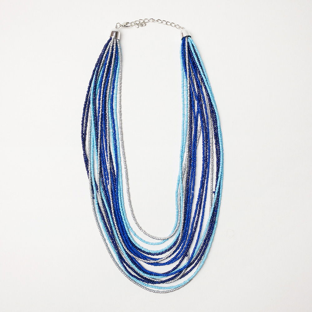 Shopika Colier cu multe siruri din margelute mici in nuante de albastru si gri metalizat