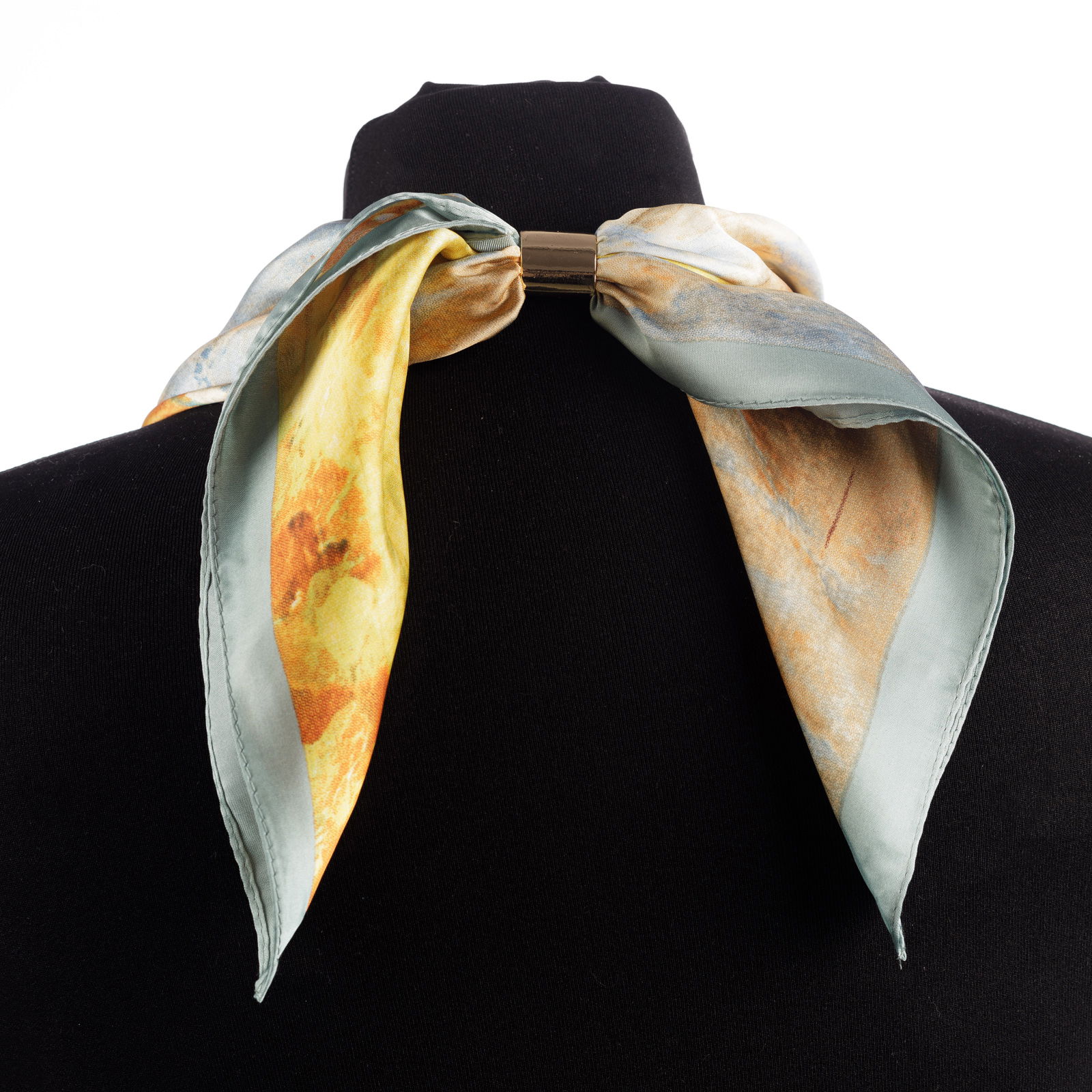 Shopika Colier esarfa cu imprimeu pastelat si inele metalice aurii si turcoaz