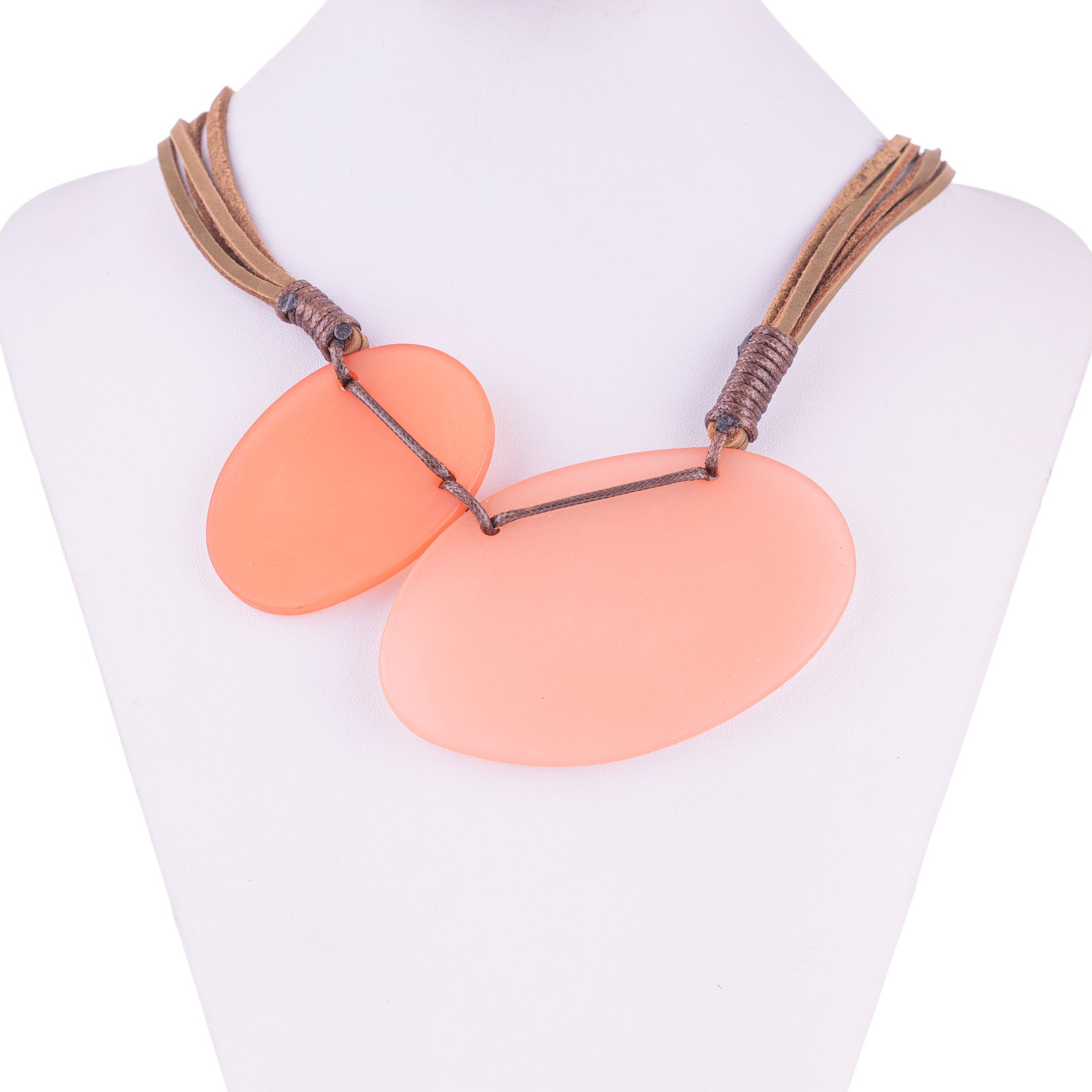 Shopika Colier piersica cu 2 elemente ovale inegale din rasina mata