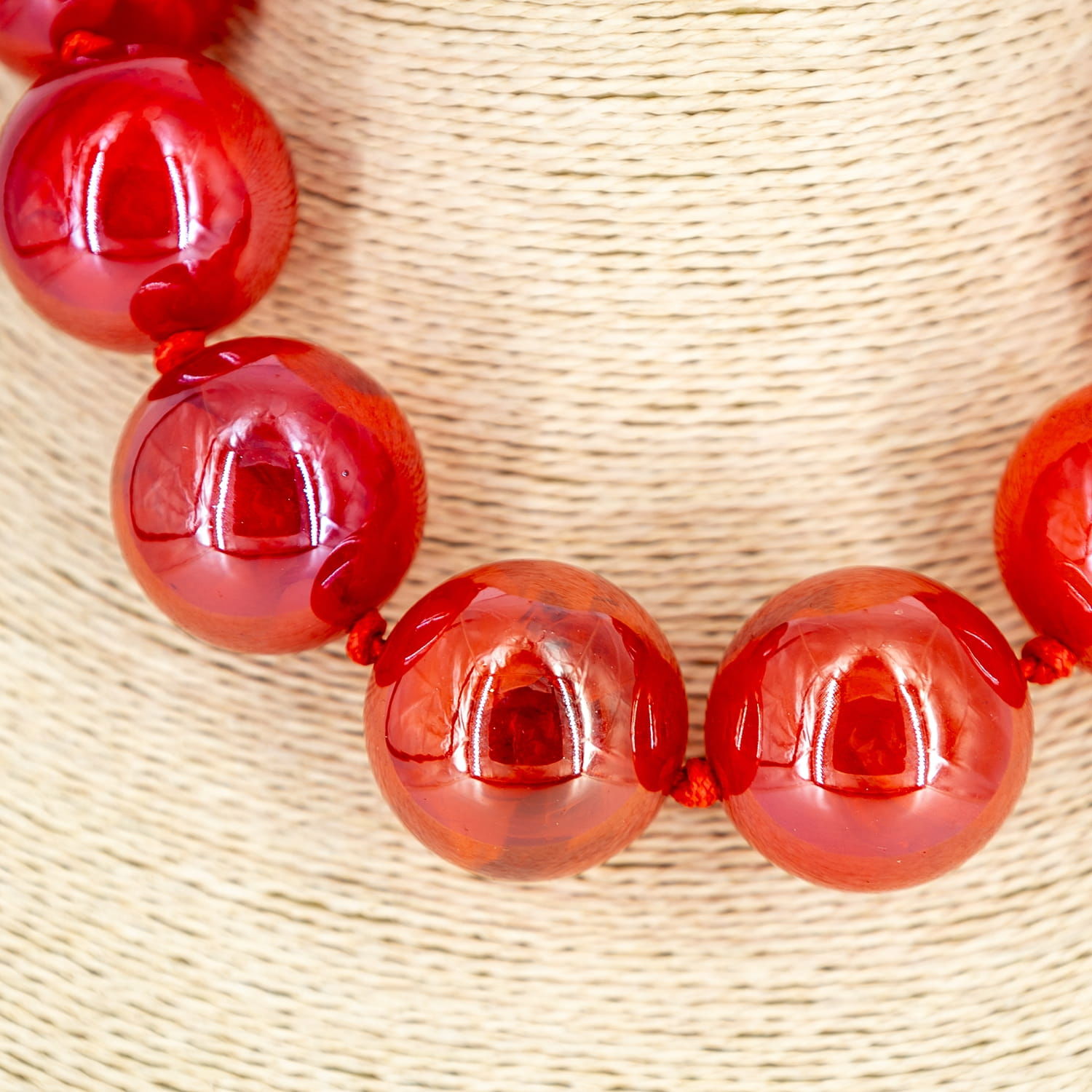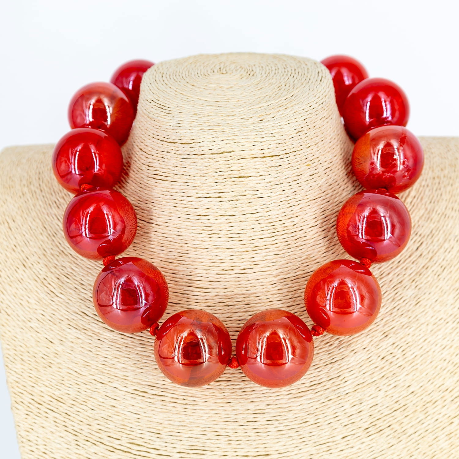 Shopika Colier scurt in stil retro, cu bile mari rosu carmin