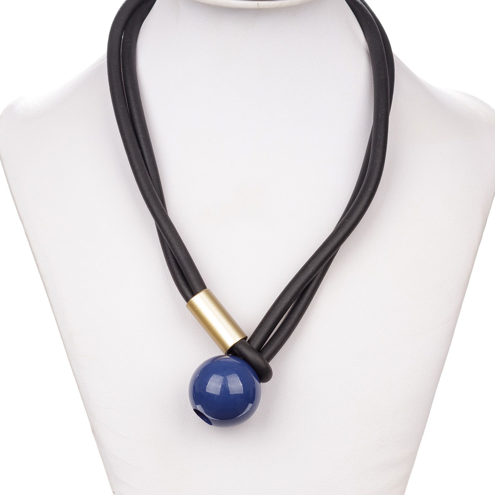 Shopika Colier silicon negru cu detaliu auriu si bila albastra
