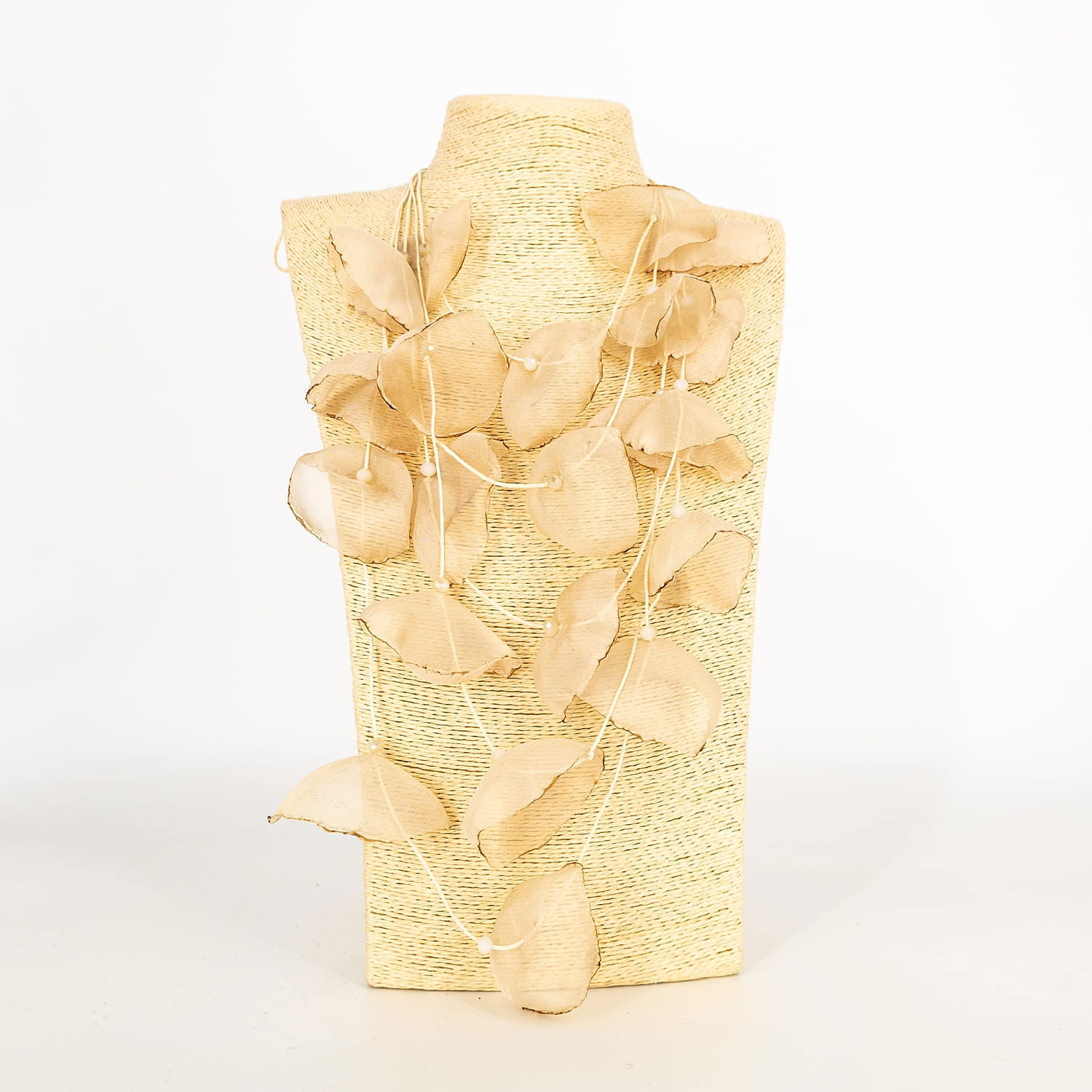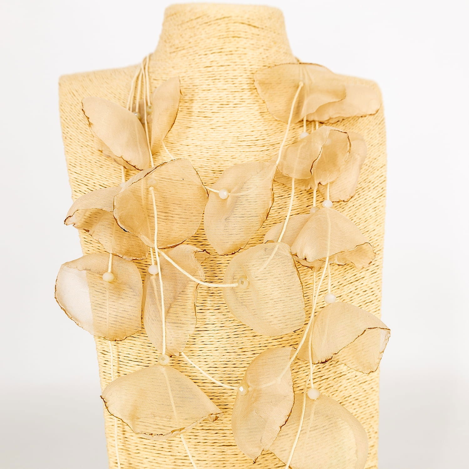 Shopika Colier statement bej cu petale textile de mac 3D din organza - design artistic italian