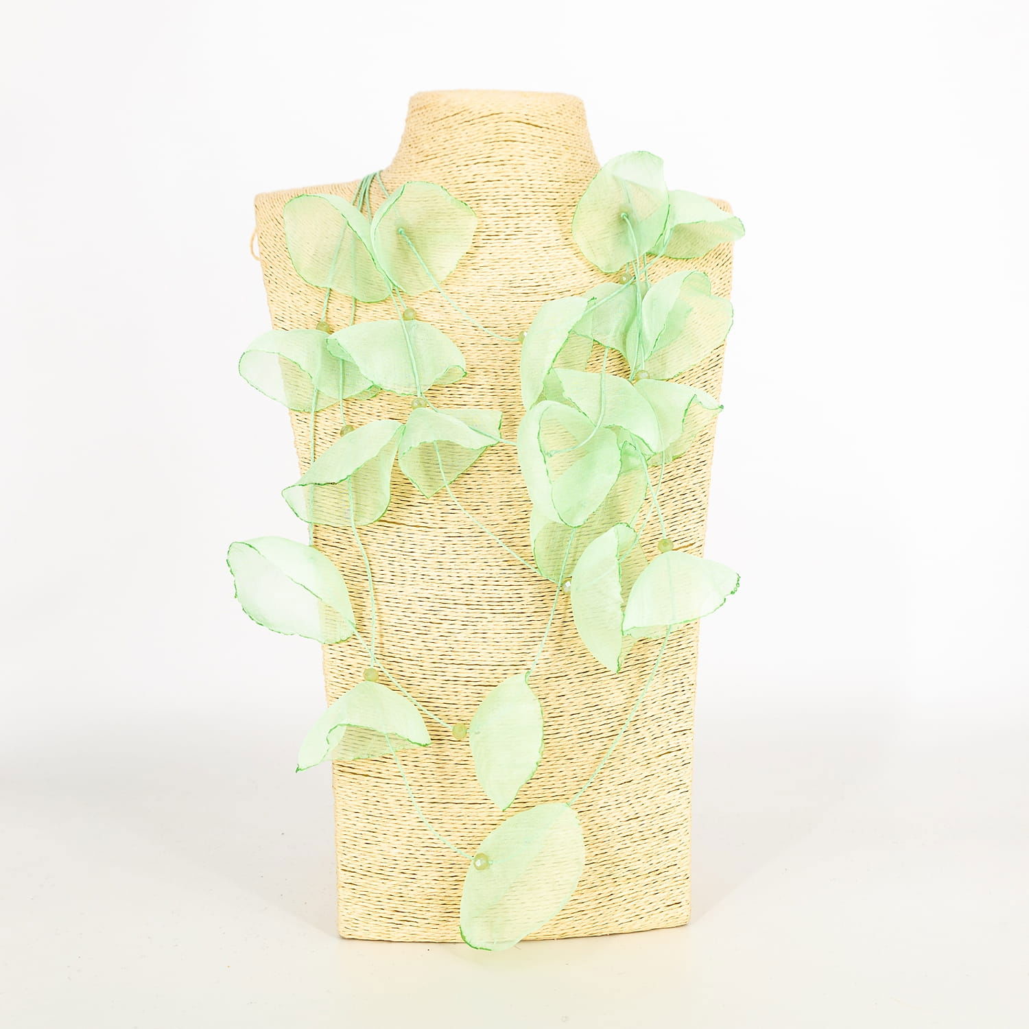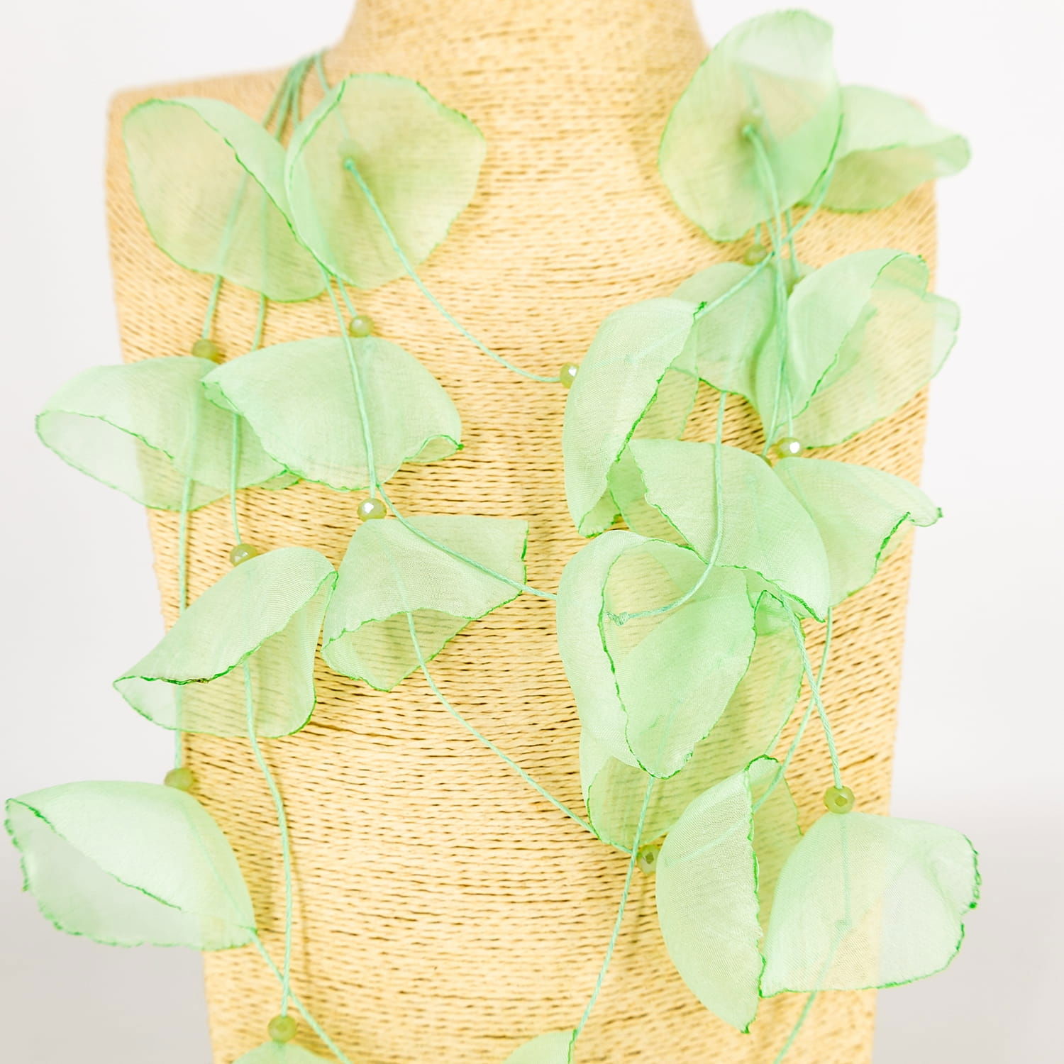 Shopika Colier statement verde menta cu petale textile de mac 3D din organza - design artistic italian