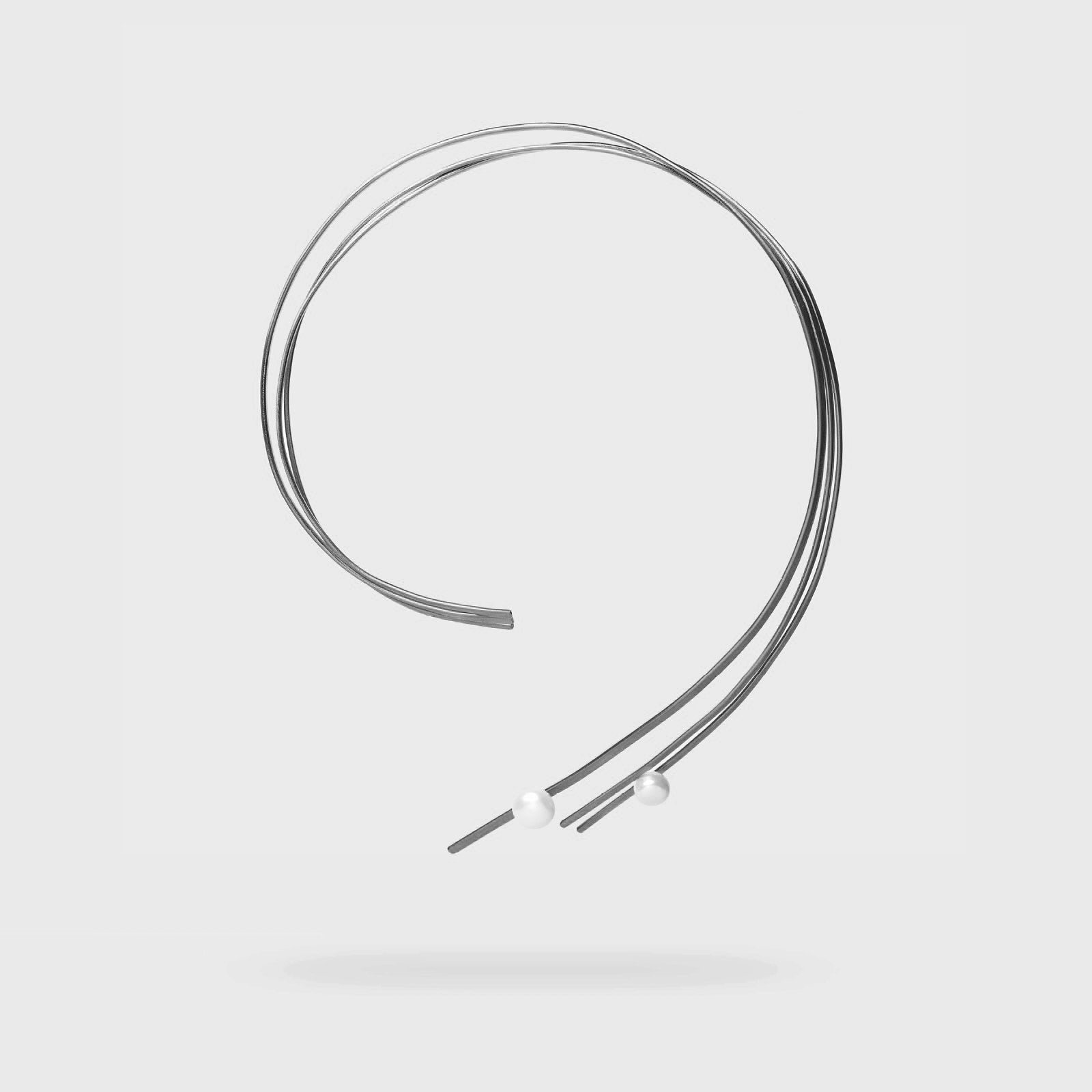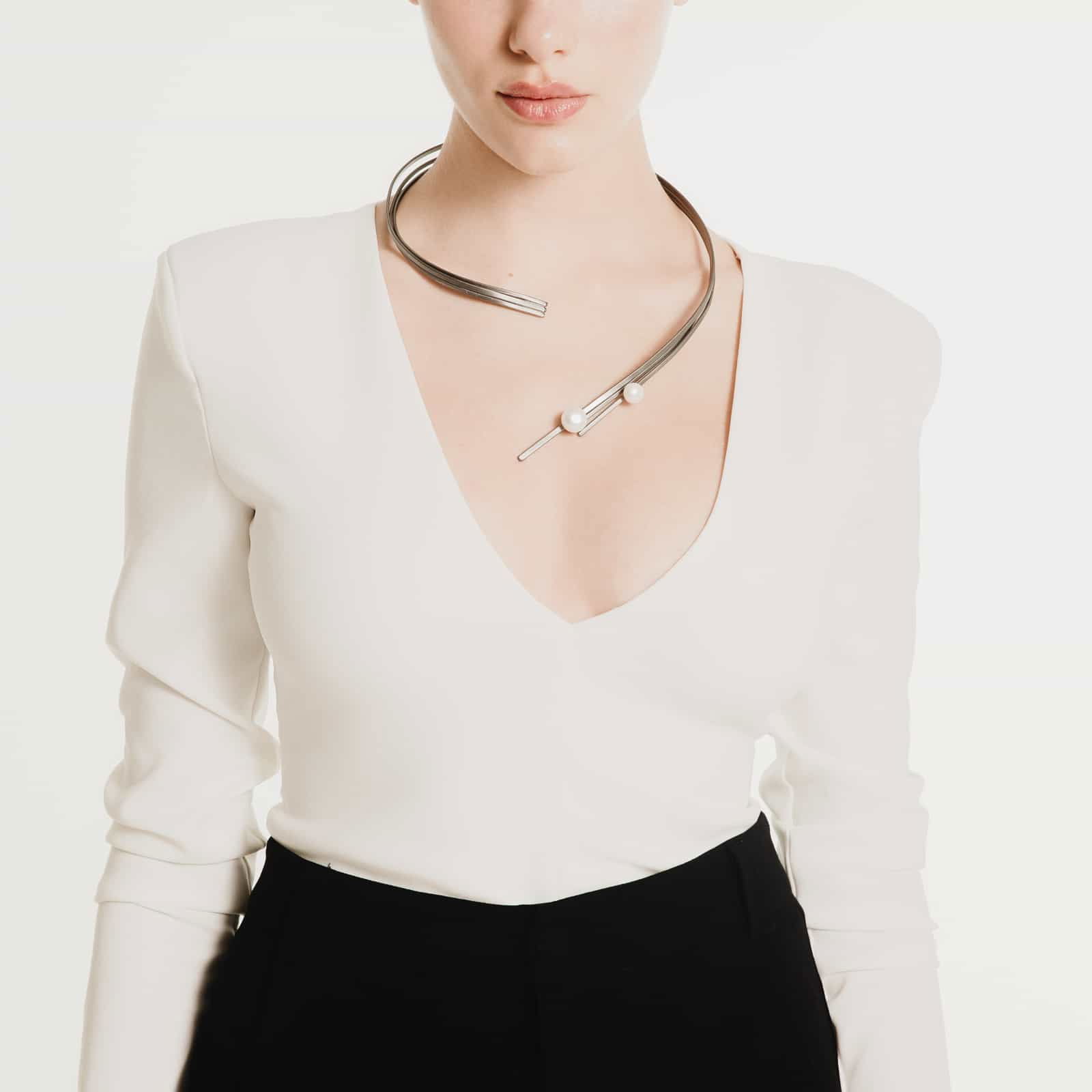 Katerina Vassou Colier triplu rigid Buttress cu perla, din alama placat cu gun metal