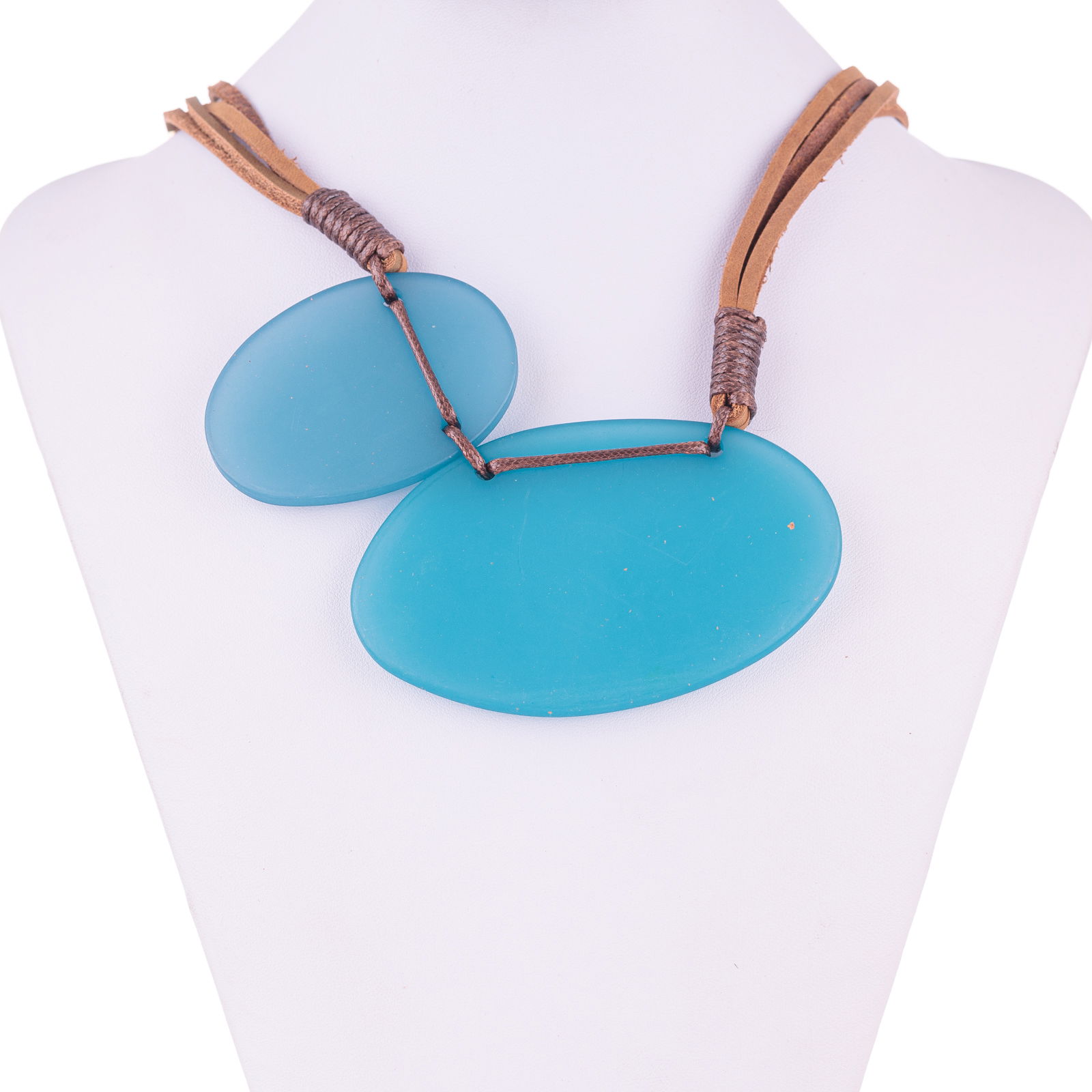 Shopika Colier turcoaz deschis cu 2 elemente ovale inegale din rasina mata