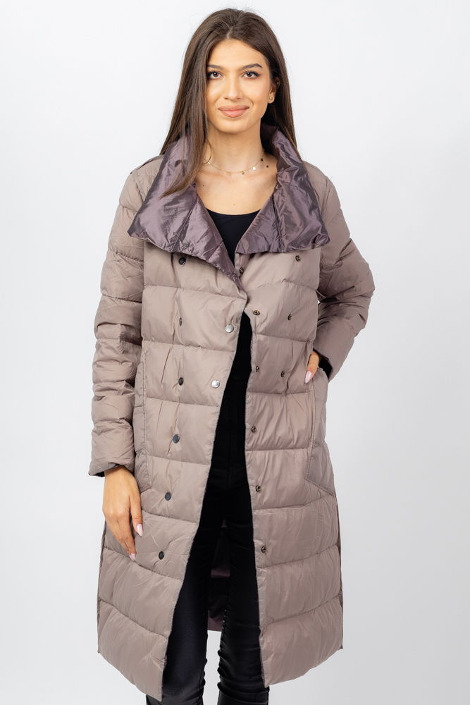 Geaca cu doua fete si umplutura din puf de gasca, bej-mov inchis