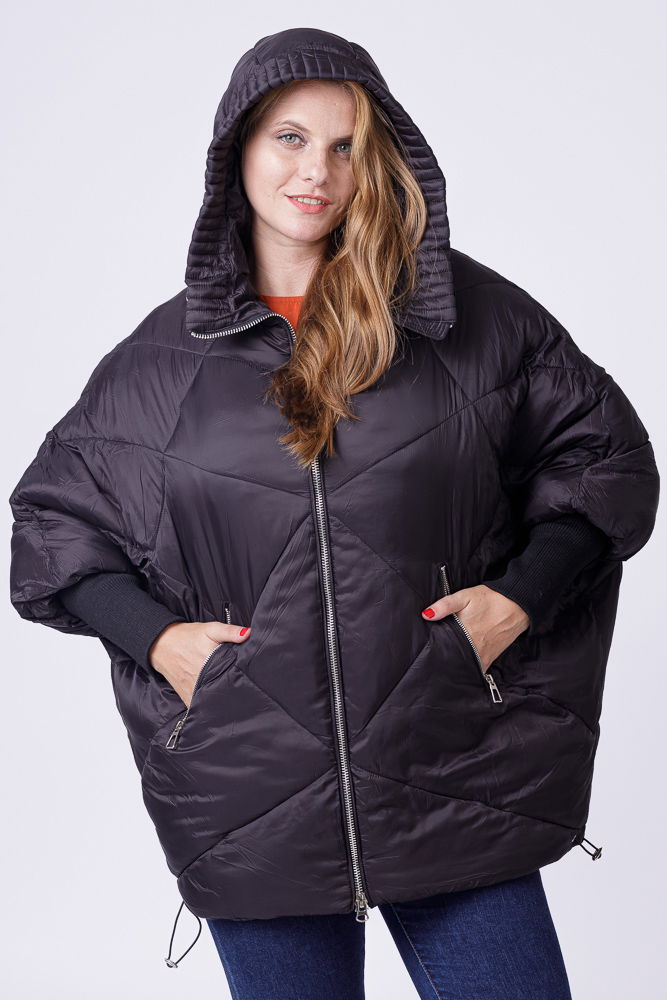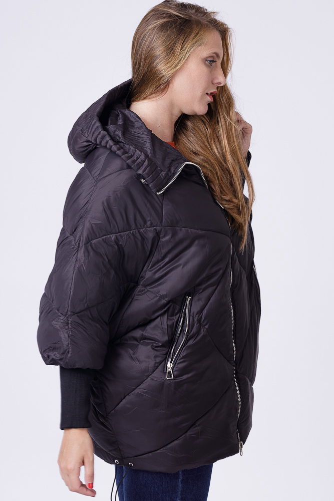 - Are snururi reglatoare la baza si la gluga cu elemente metalice decorative argintii