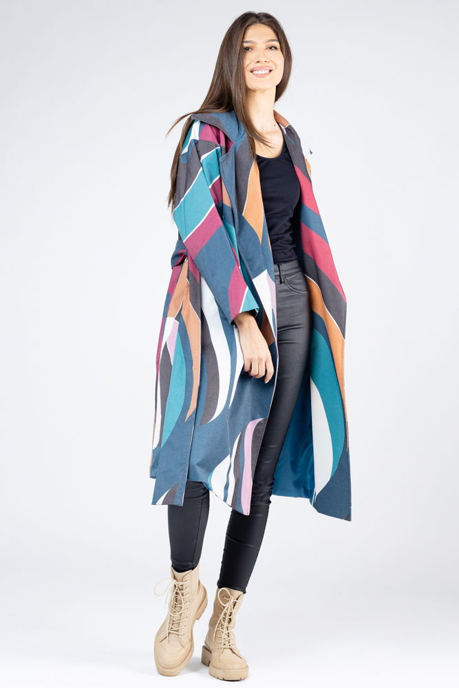 Pardesiul imprimat deosebit este de mare efect si se poate purta cu usurinta in diverse tinute casual sau elegante, cu fuste sau pantaloni si cu siguranta te va ajuta sa te faci remarcata.