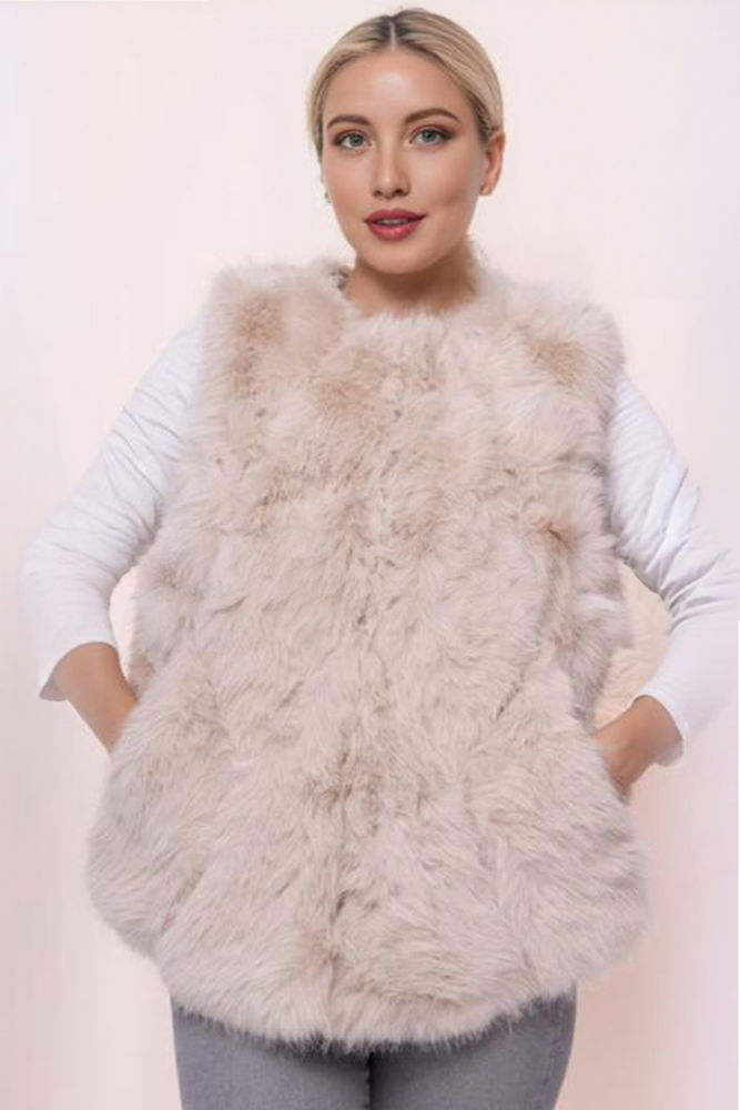 Vesta dama din blăniță artificială crem este piesa must-have din sezonul rece. Moale și pufoasă, cu croi lejer și lungime medie, adaugă un plus de stil și confort oricărei ținute.Se poartă ușor peste pulovere, cămăși sau rochii tricotate, fiind potrivită pentru look-uri casual, dar și pentru ținute elegante de zi.