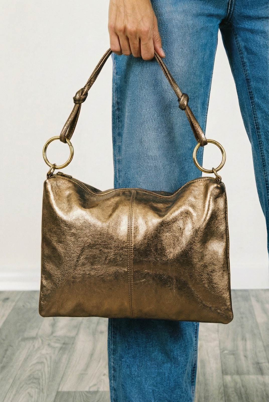 Shopika Geanta plic mare cu inele mari aurii si doua barete, din piele naturala auriu inchis 2