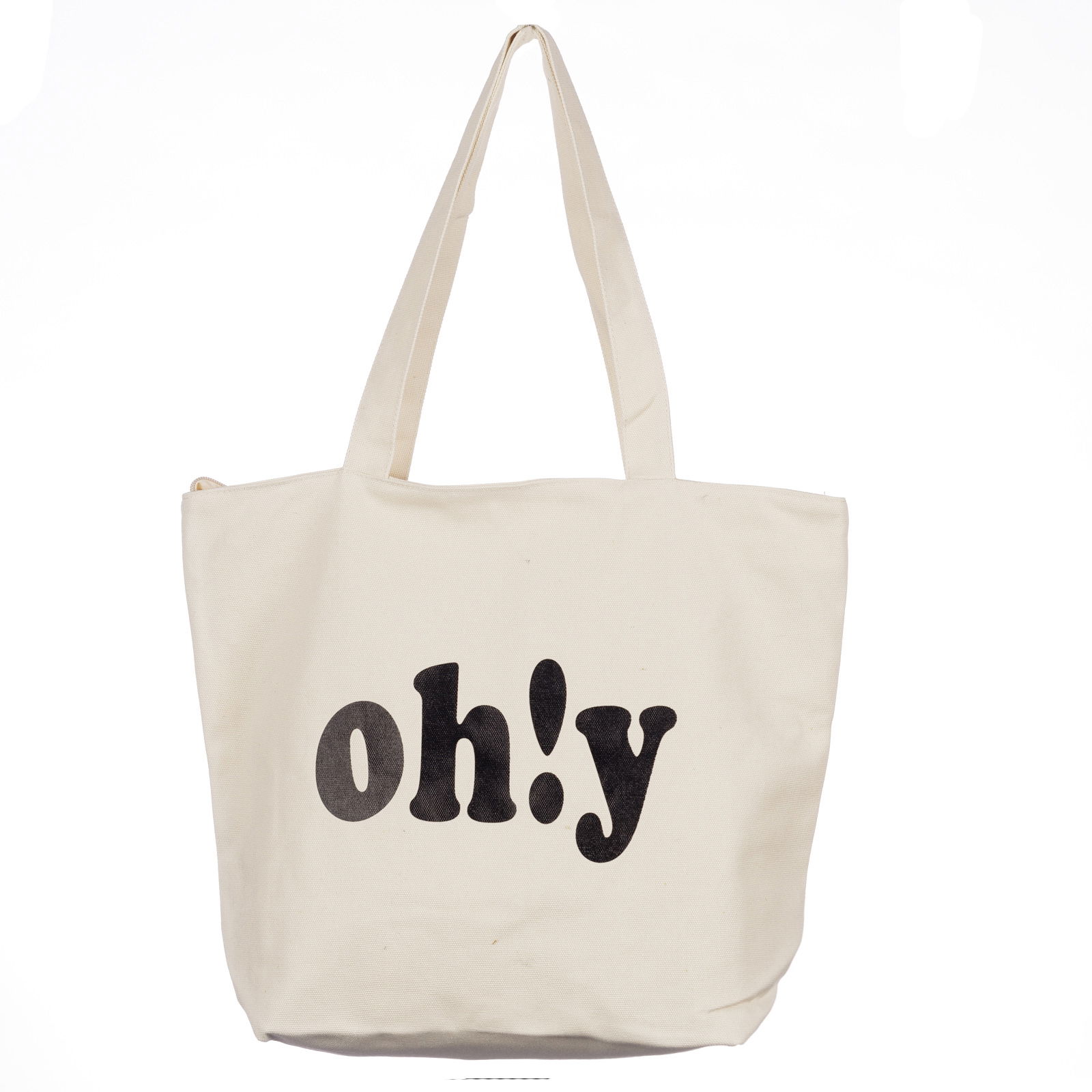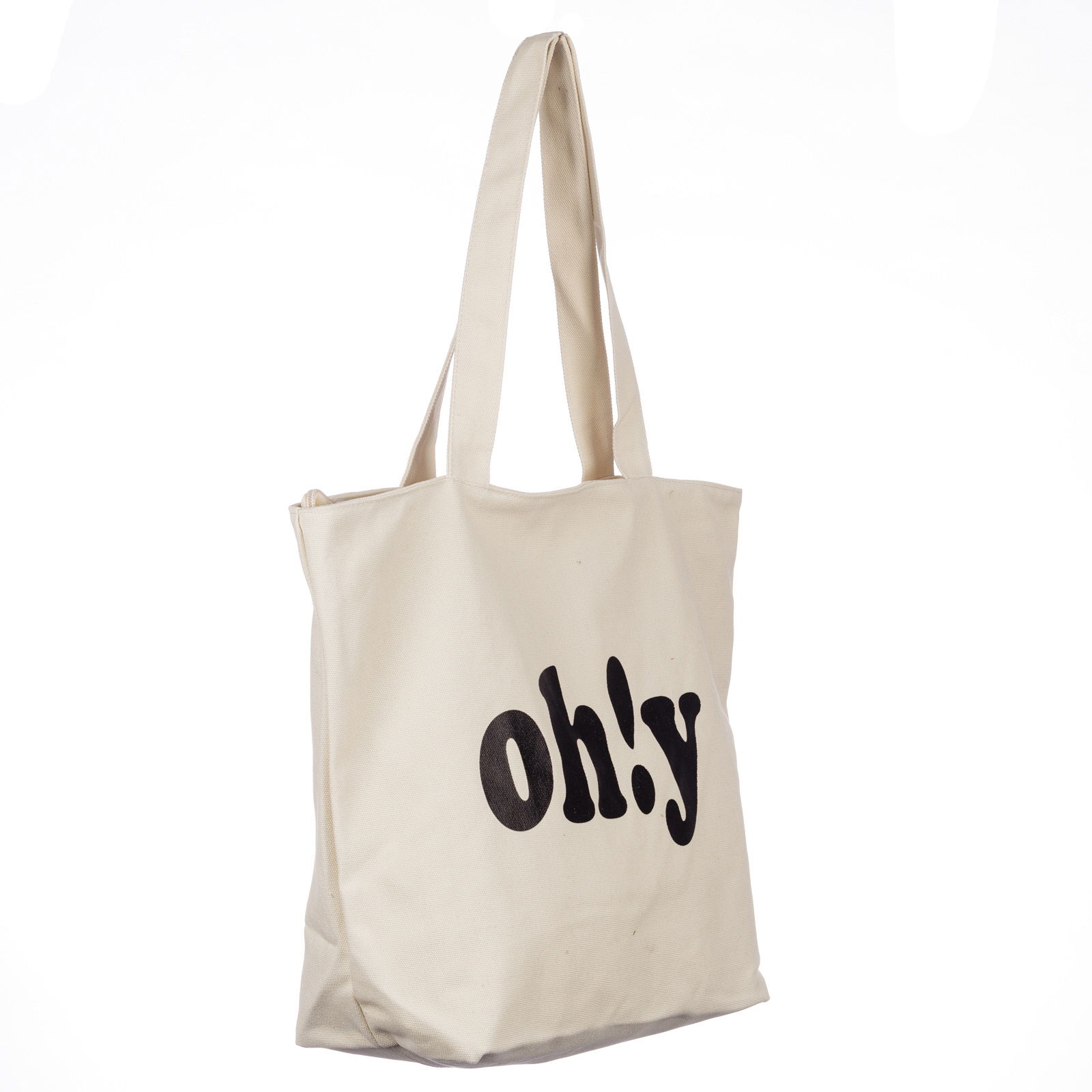 Geanta de umar din bumbac cu fermoar si imprimeu Oh!Y, alba