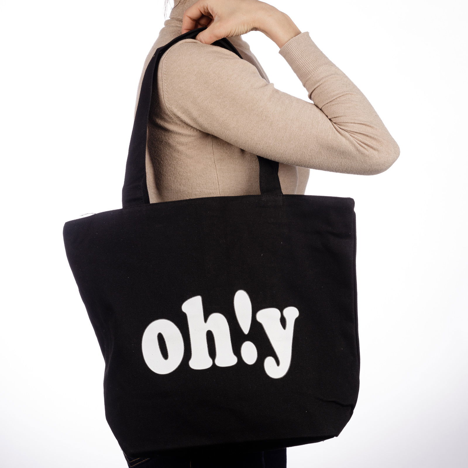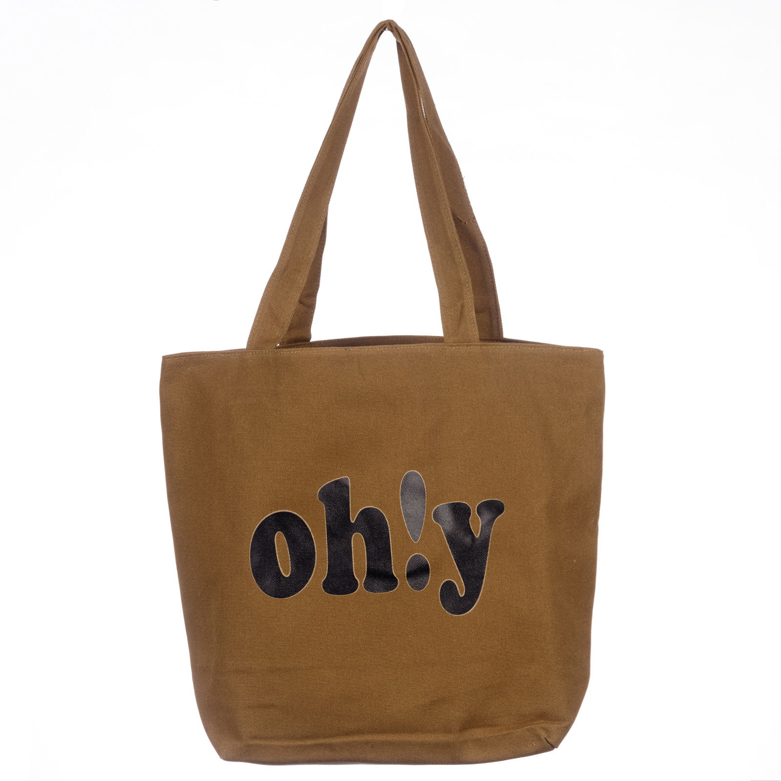 Geanta de umar din bumbac cu fermoar si imprimeu Oh!Y, camel
