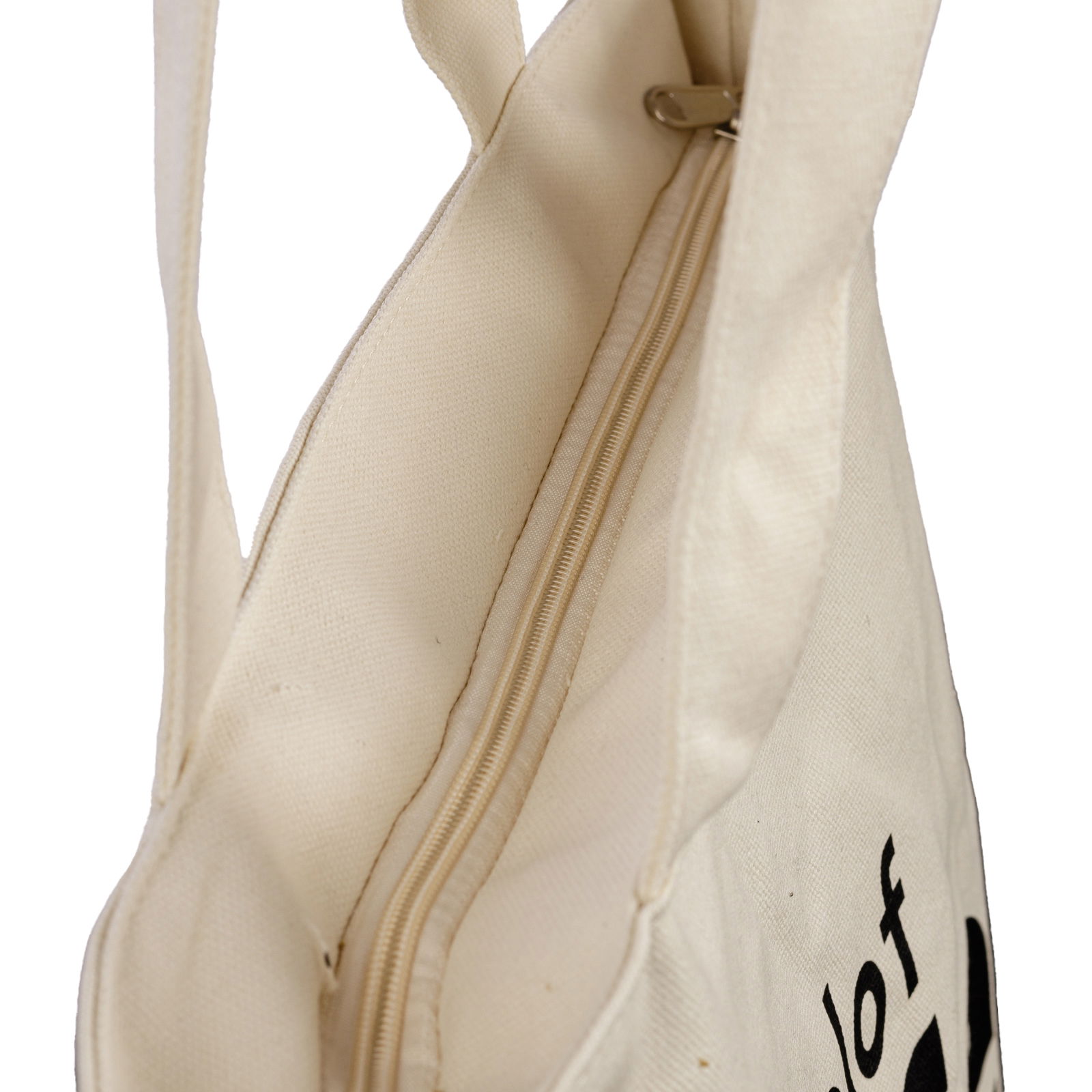 Geanta de umar din bumbac cu fermoar si imprimeu School of Life, camel