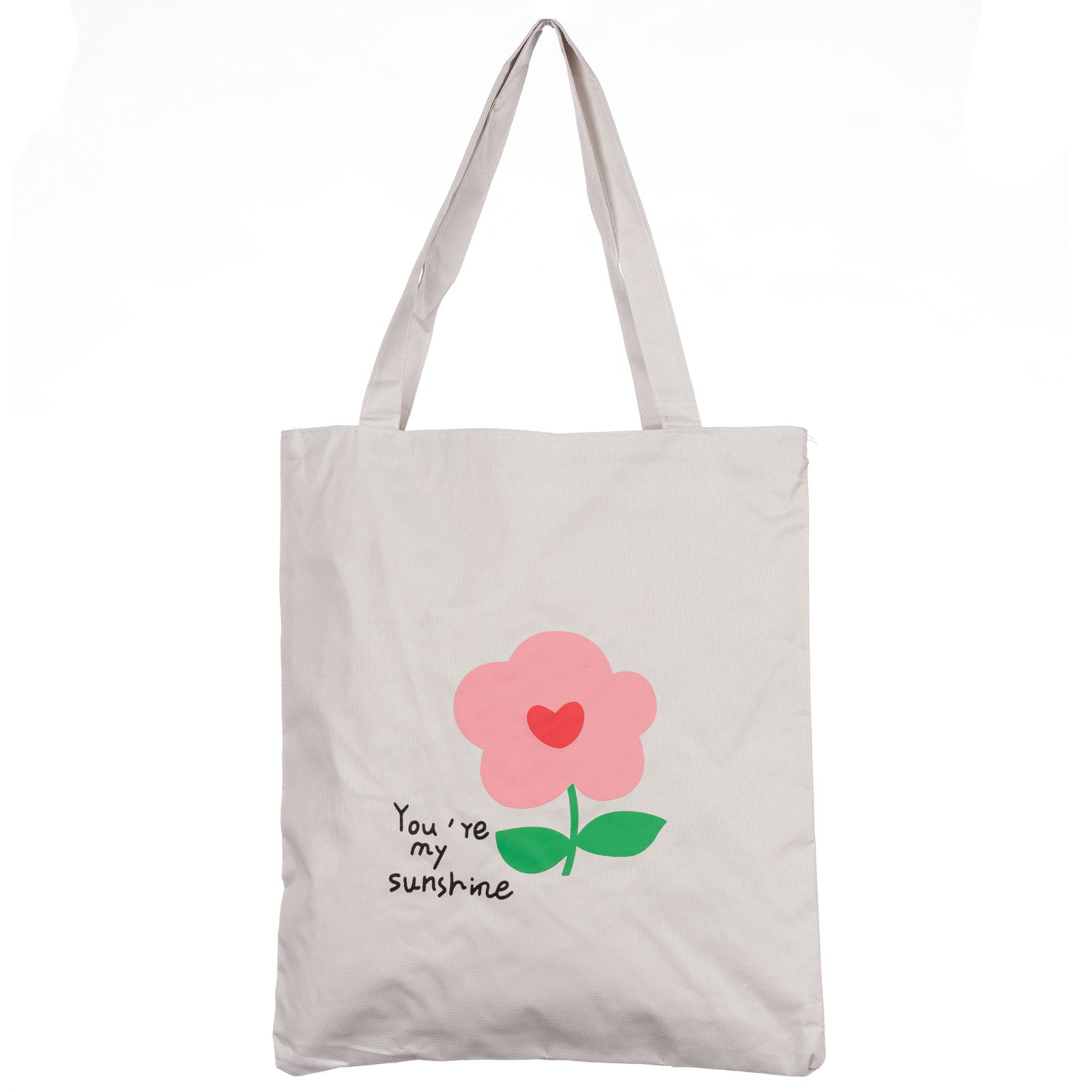 Geanta shopper din material textil, cu imprimeu floare si mesaj You're my sunshine
