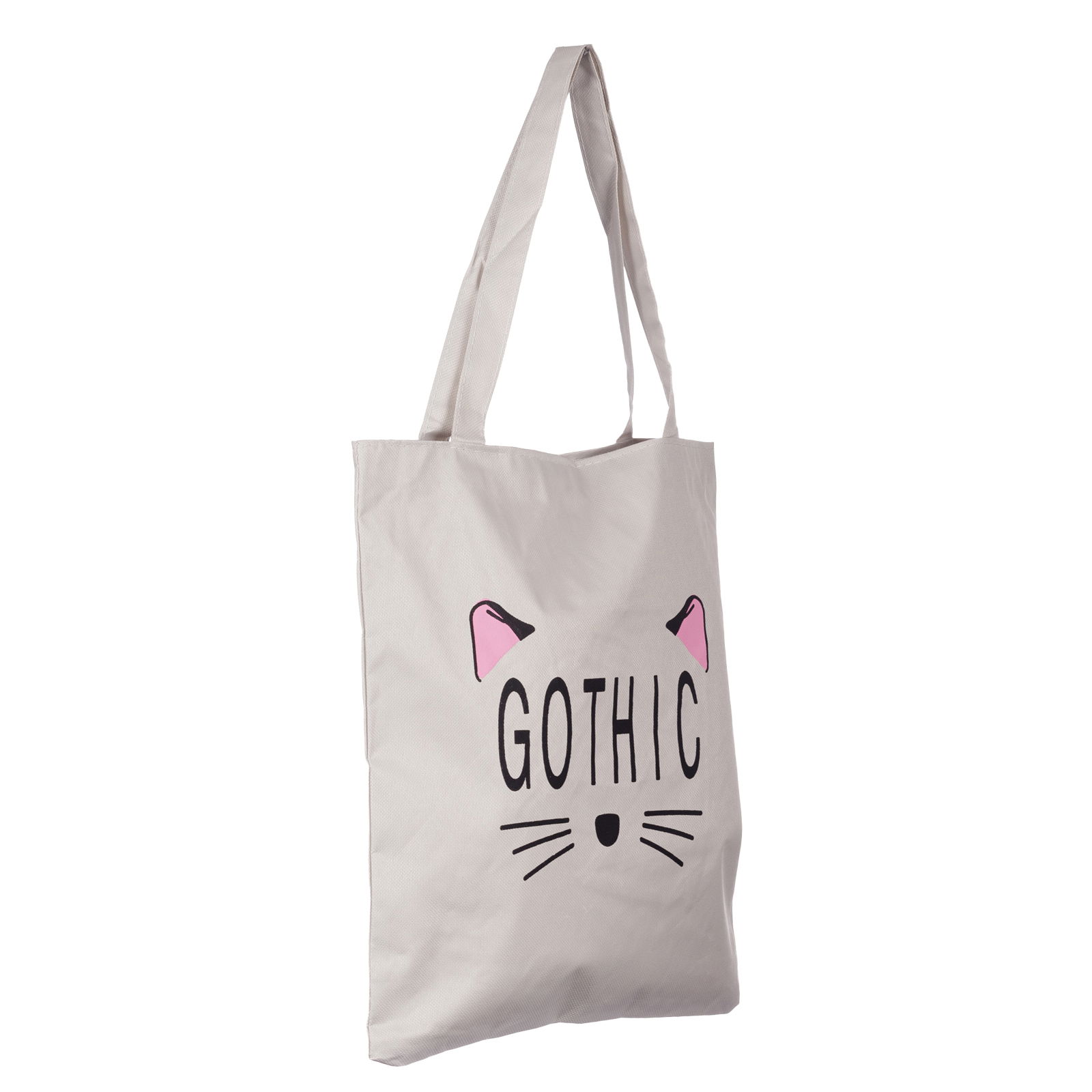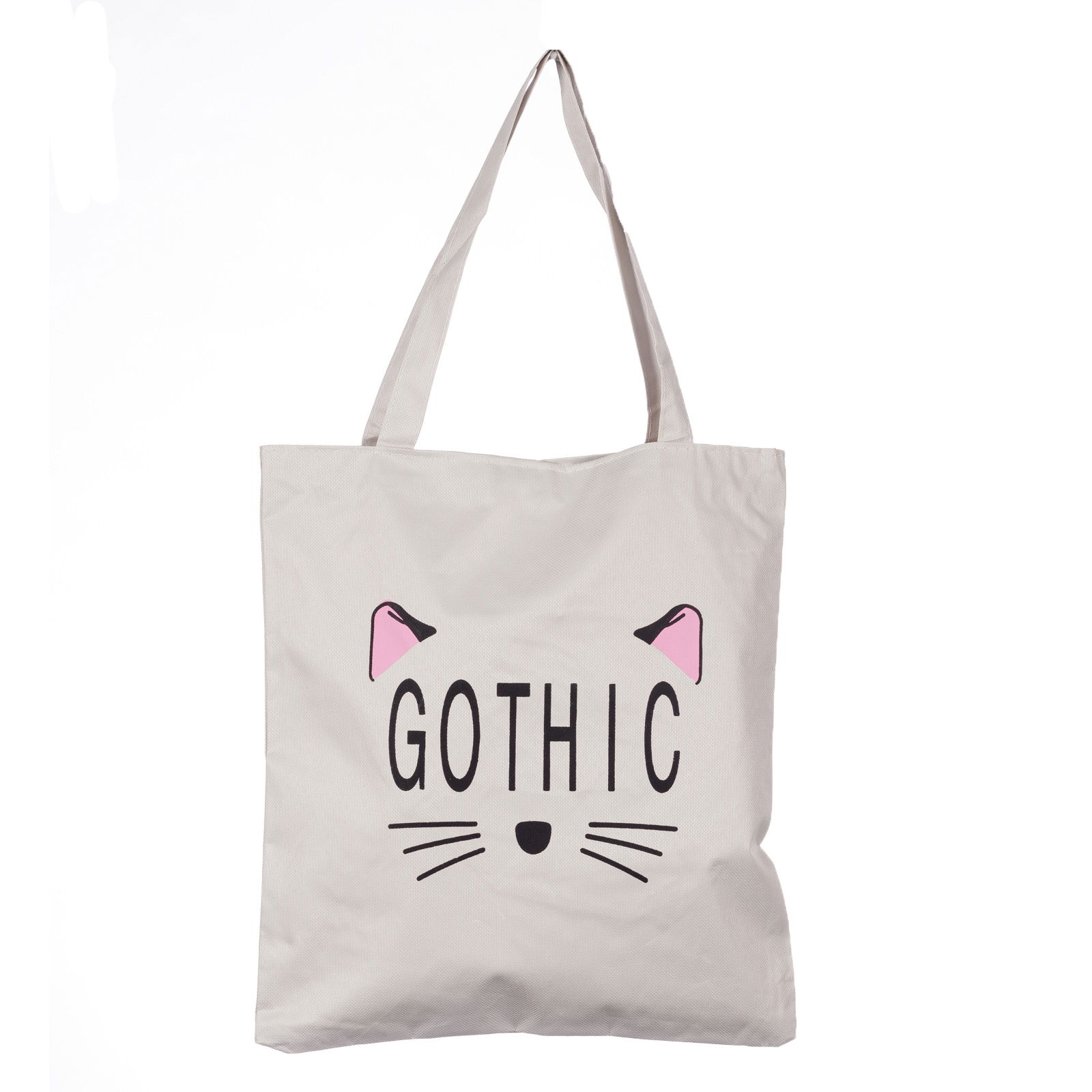 Geanta shopper alba din material textil, cu imprimeu grafic pisica Gothic