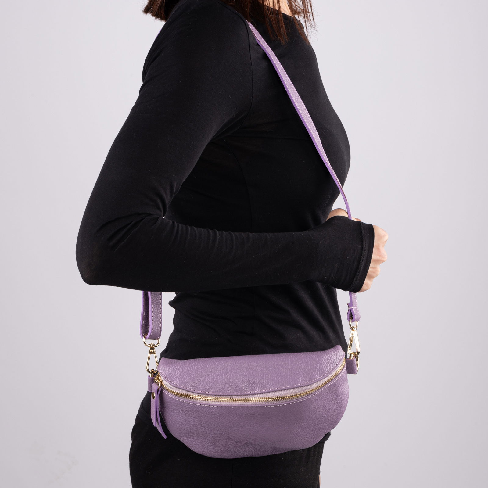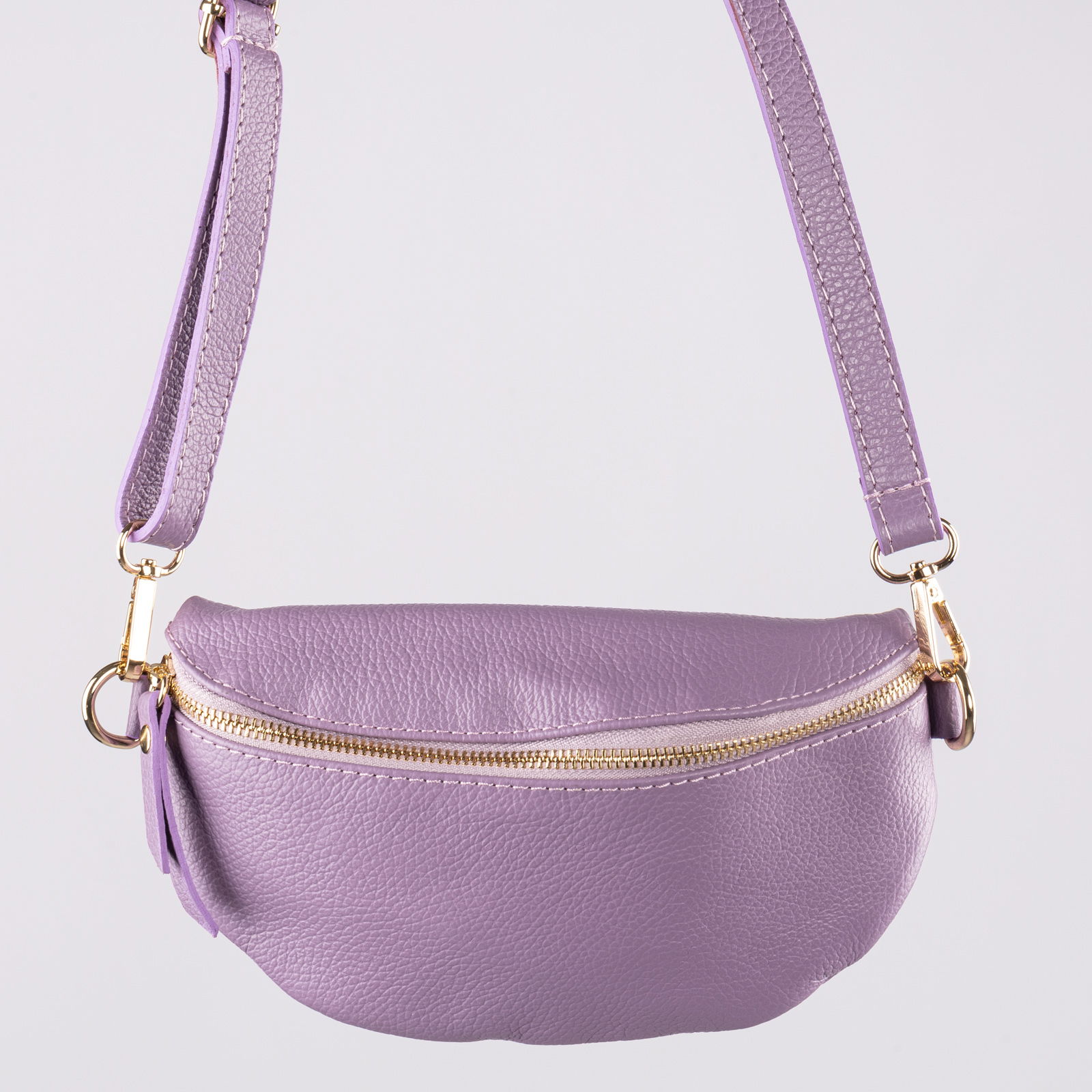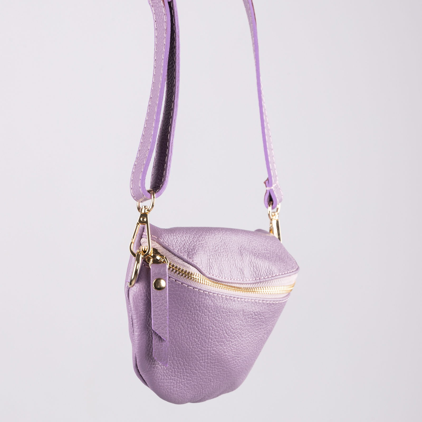 Shopika Borseta din piele naturala cu fermoar si bareta reglabila, mov deschis