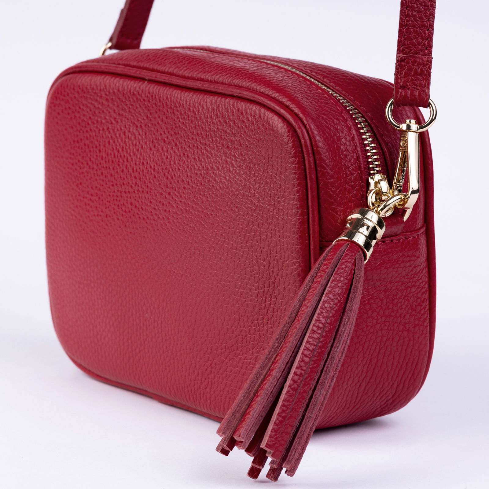 Shopika Geanta crossbody rosu inchis din piele naturala, cu ciucure din piele