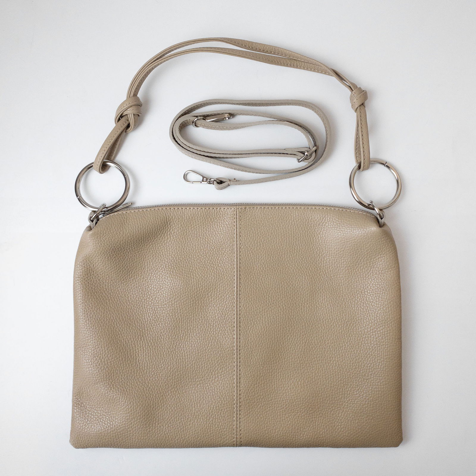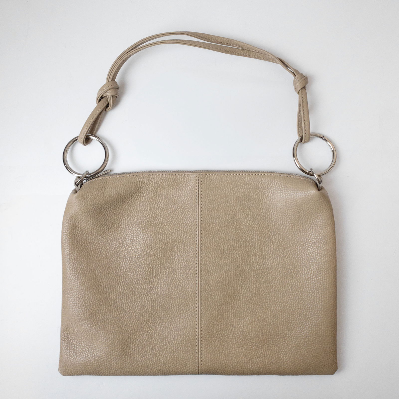 Shopika Geanta plic mare cu inele mari arginti si doua barete, din piele naturala bej