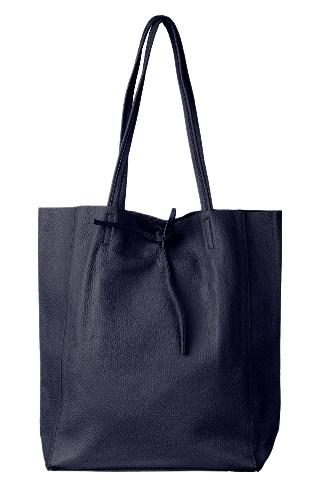 Shopika Geanta shopper bleumarin din piele naturala, cu fermoar