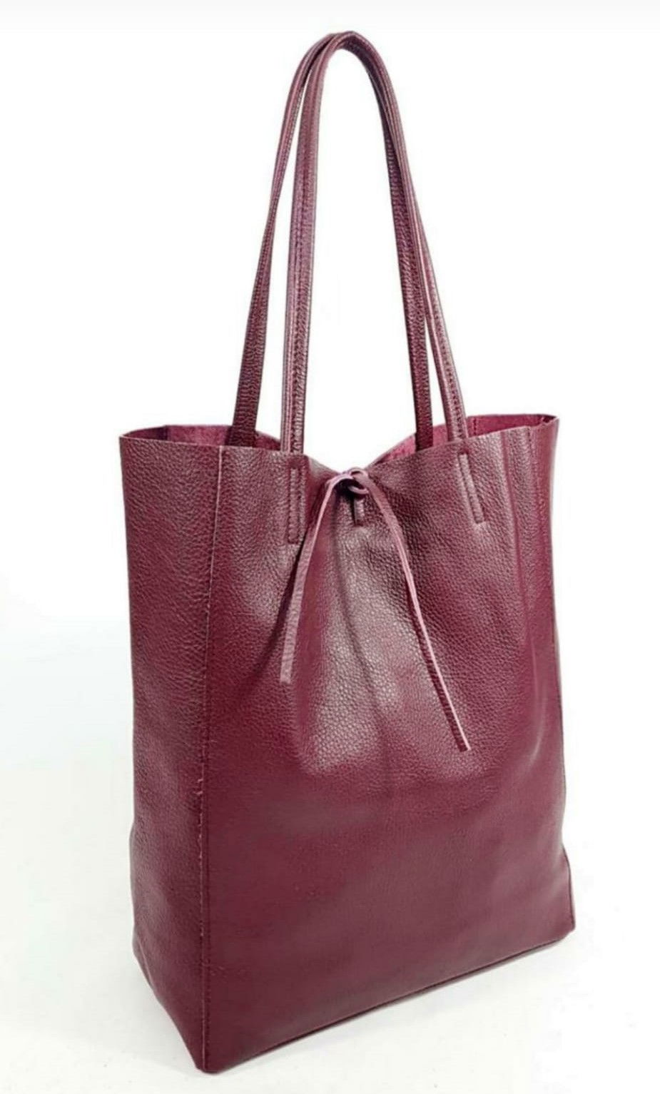 Shopika Geanta shopper bordo din piele naturala