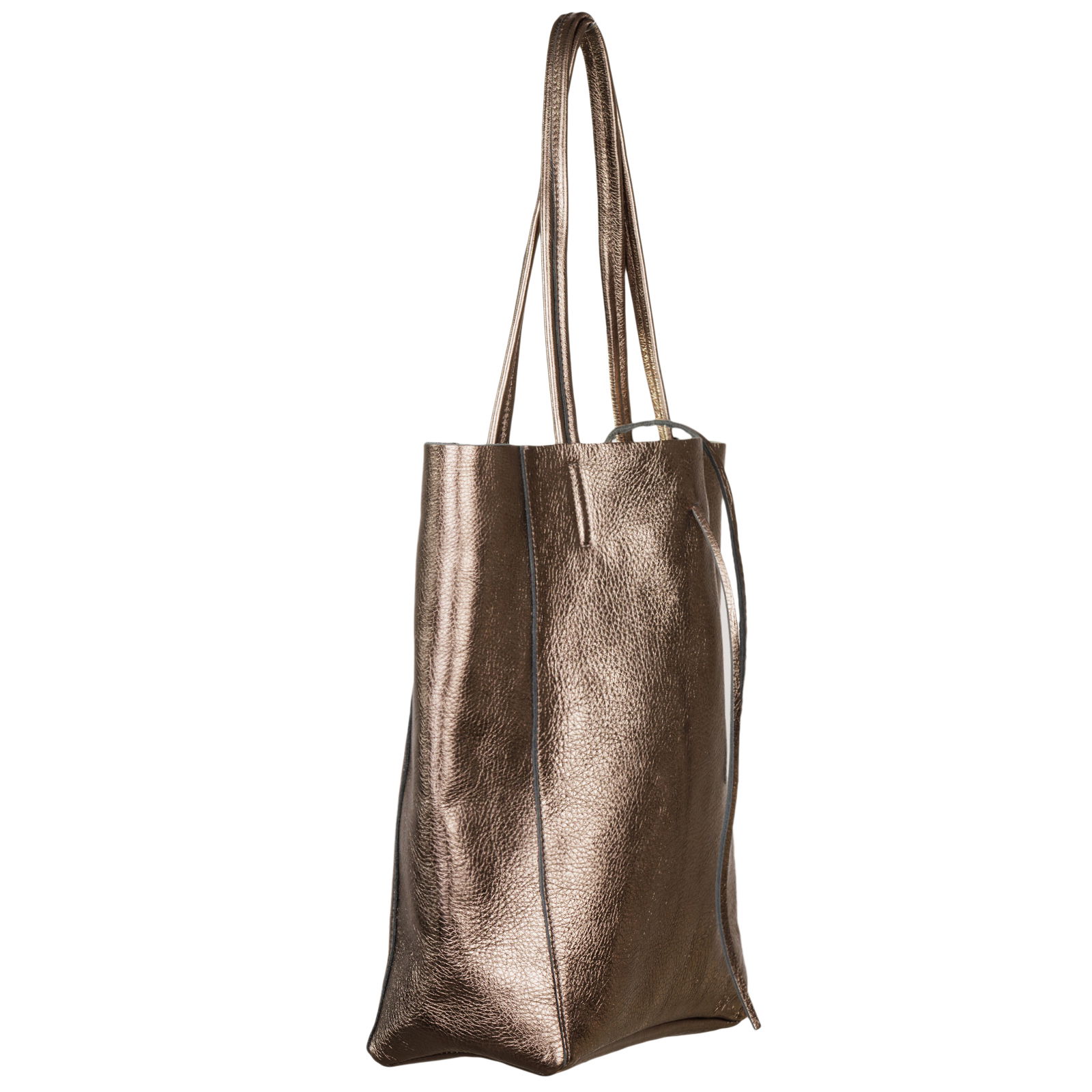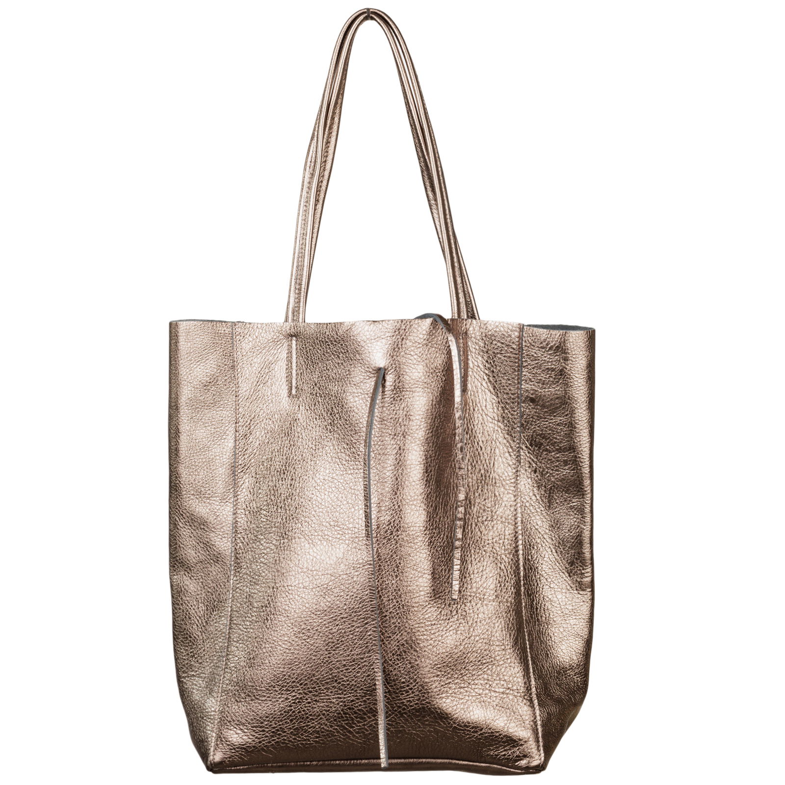 Shopika Geanta shopper din piele naturala, aramiu metalizat