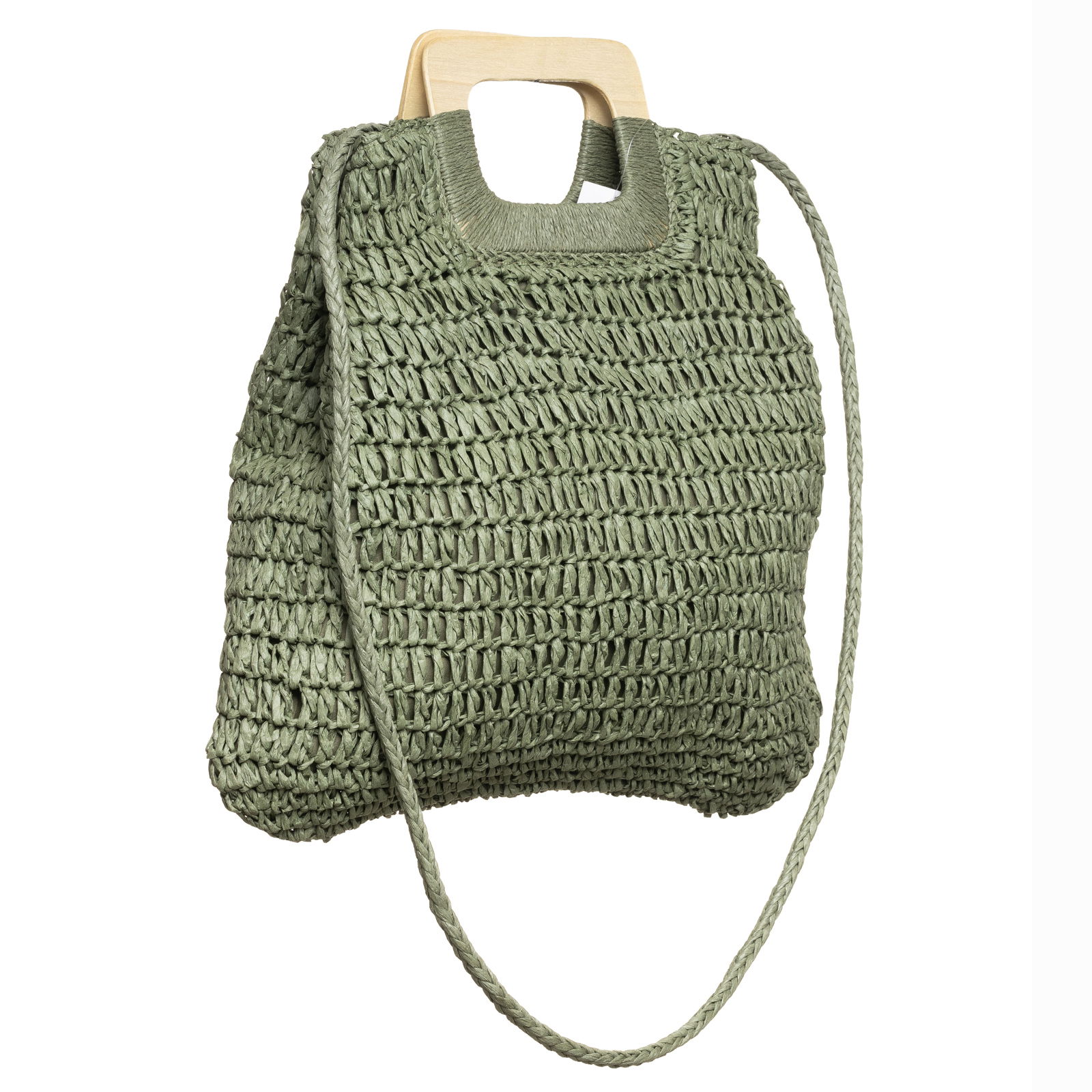 Shopika Geanta impletita crossbody, cu manere late din lemn, verde prafuit