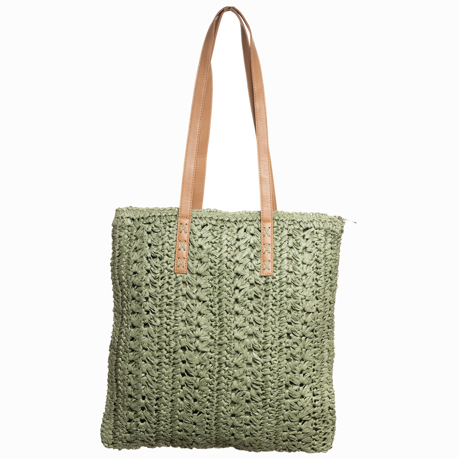 Shopika Geanta shopper impletita cu manere din piele ecologica, verde prafuit