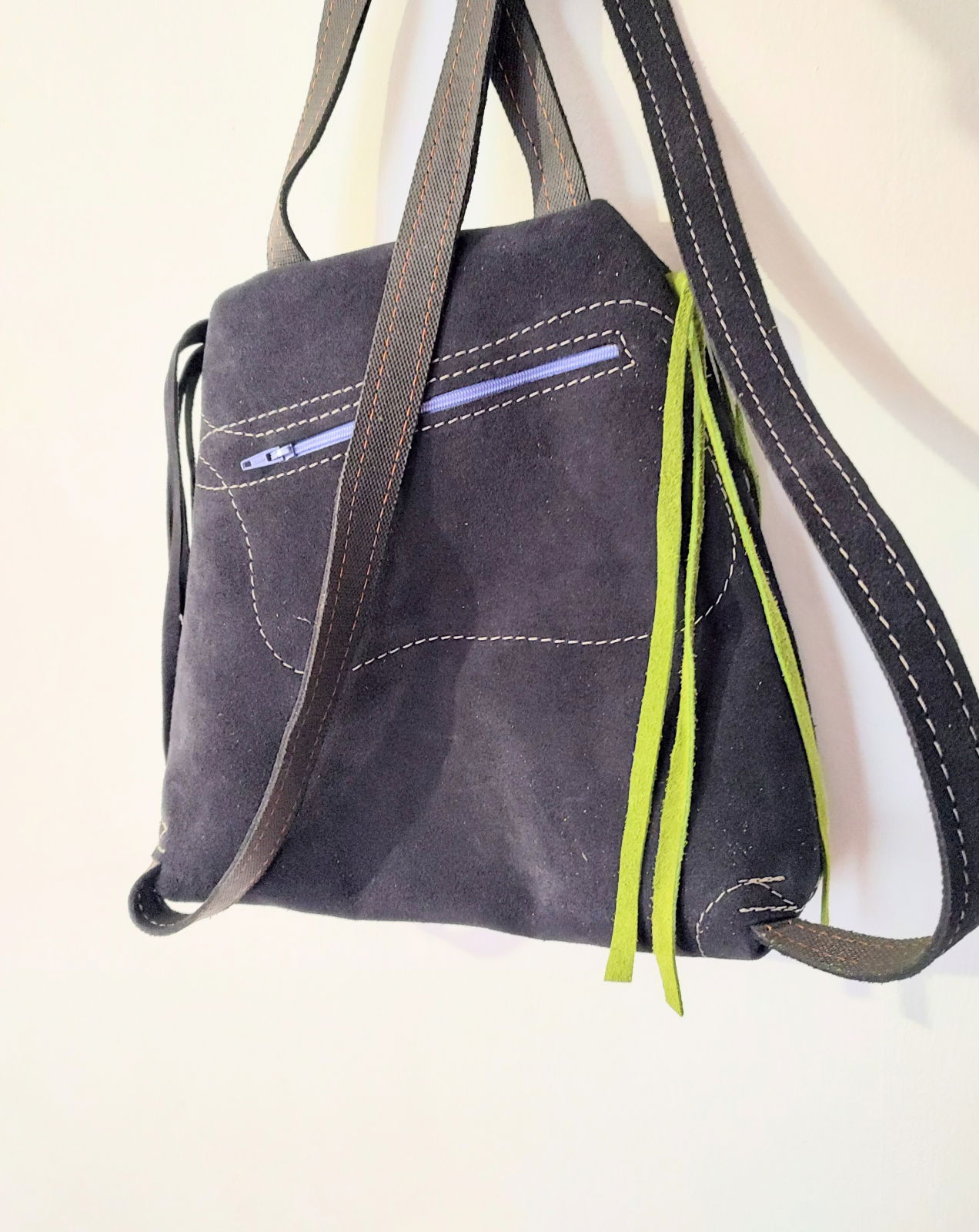 Rucsac unicat, croit manual din piele naturala , accesorizat cu pisicuțe.