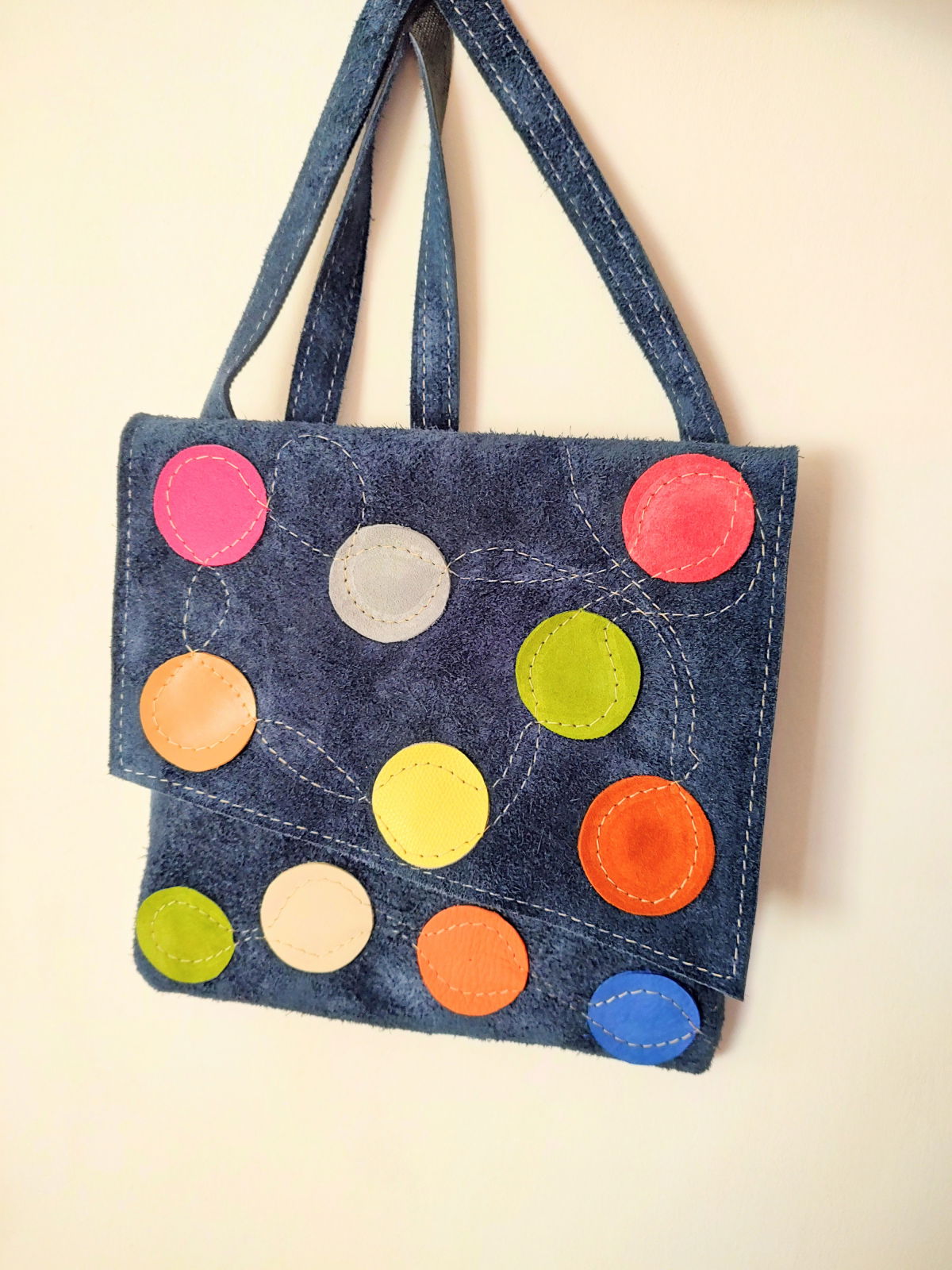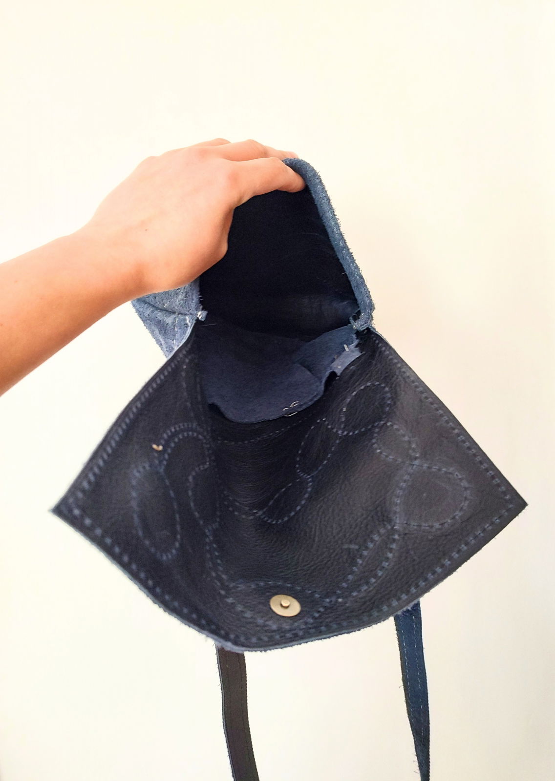 Geantă bleumarin închis ,croita manual din piele naturala,ușor de asortat .