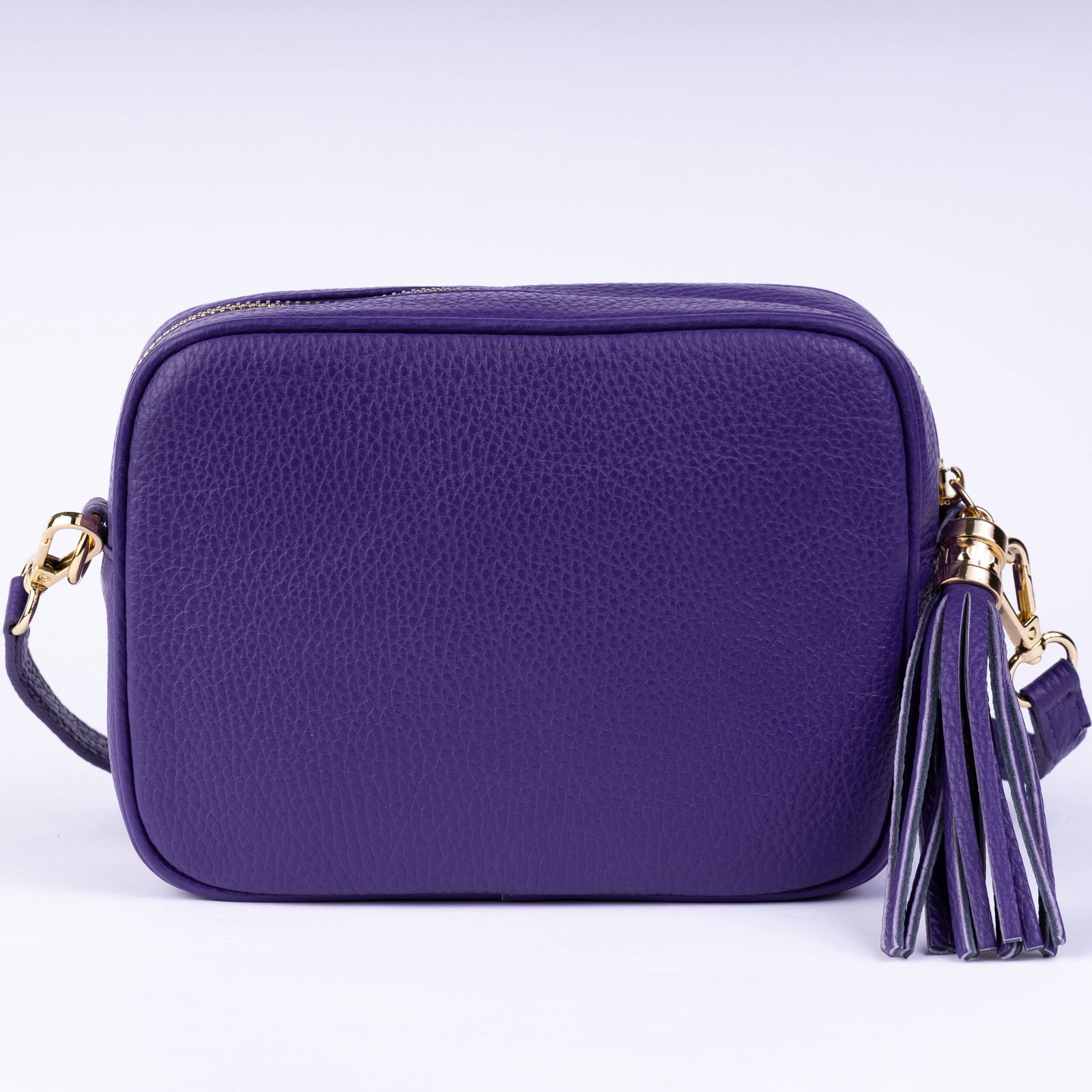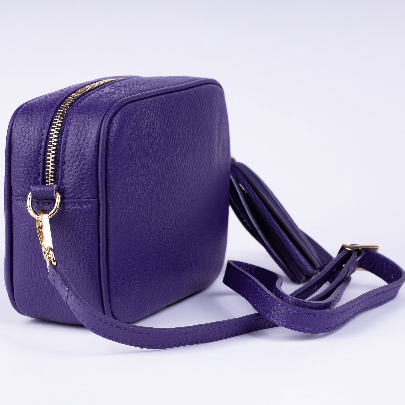 Shopika Geanta crossbody mov din piele naturala, cu ciucure din piele