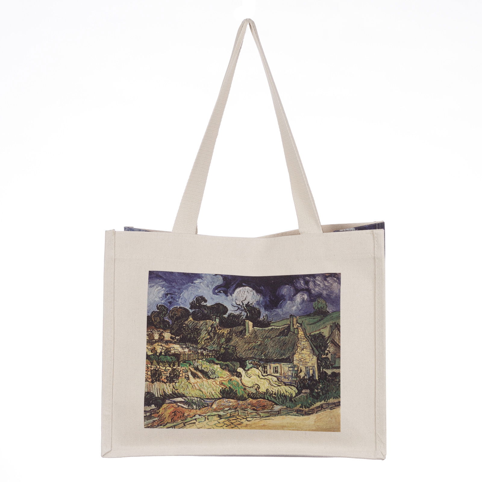 Shopika Geanta de umar din material textil cu imprimeu inspirat dintr-o pictura cu un peisaj rural si cer innorat