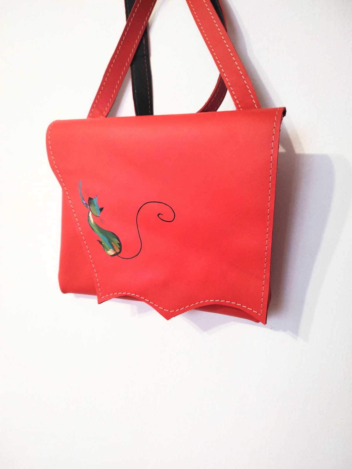 Geantă concepută în stil jucăuș, lucrată manual din piele naturală , o nuanță pasională de roșu, accesorizată manual .