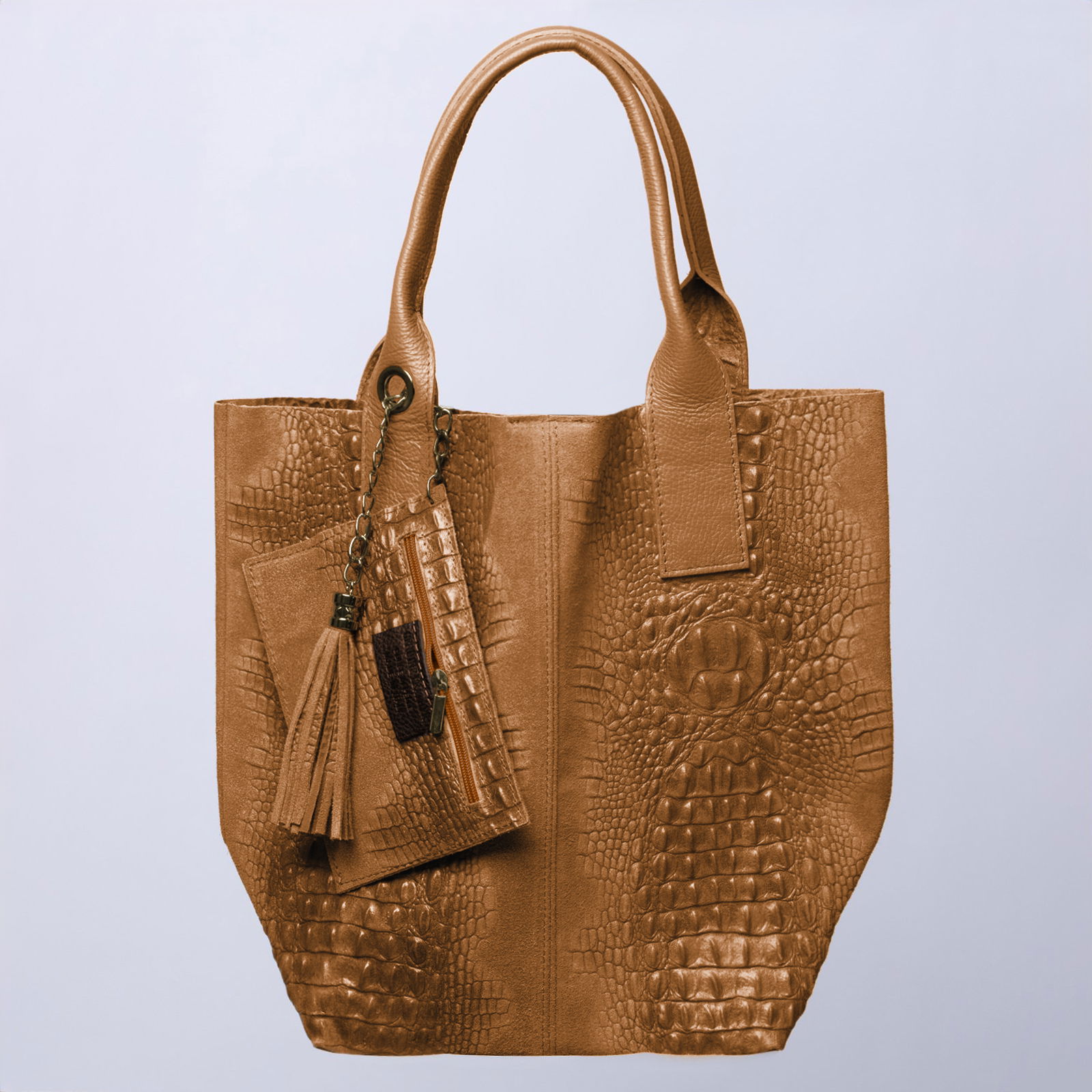 Geanta cu model piele de crocodil este potrivita pentru orice tinuta casual sau eleganta.
